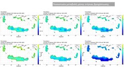 Από πλευράς ανέμων δεν αναμένονται σημαντικές αλλαγές, ωστόσο η εισερχόμενη ακτινοβολία μικρού μήκους κύματος που φθάνει στην επιφάνεια θα παρουσιάσει σχετικά μικρή αύξηση. Στα ορεινά υπολογίζονται σημαντικά μεγαλύτερες μέσες ετήσιες αυξήσεις (έως 8 Watt/m2)