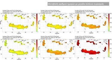 Επίσης η ζήτηση ηλεκτρικής ενέργειας για ψύξη, αναμένεται να αυξηθεί (εν αντιθέσει με τη ζήτηση ενέργειας για θέρμανση), προοιωνίζεται επιμήκυνση της βλαστητικής περιόδου έως και κατά 22 μέρες/έτος, με μεγαλύτερη αύξηση στα ορεινά (έως 80 μέρες/έτος), ενώ αυξάνεται ως και κατά 40 ημέρες (στο δυσμενές σενάριο) ο αριθμός των ημερών με υψηλή πιθανότητα εκδήλωσης πυρκαγιάς.
