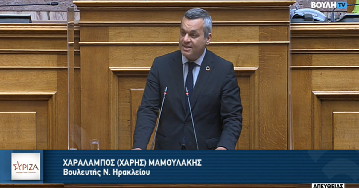 Αναδεικνύοντας την κυβερνητική καθυστέρηση αλλά και τα σημαντικά κενά του κλιματικού νόμου της ΝΔ, που επί της ουσίας δεν προσφέρουν το παραμικρό στην προστασία του περιβάλλοντος, πραγματοποιήθηκε η τοποθέτηση του αν. Τομεάρχη Ανάπτυξης & Επενδύσεων Κ.Ο. ΣΥΡΙΖΑ - Προοδευτική Συμμαχία, Βουλευτή Ηρακλείου Χάρη Μαμουλάκη στην Ολομέλεια της Βουλής.