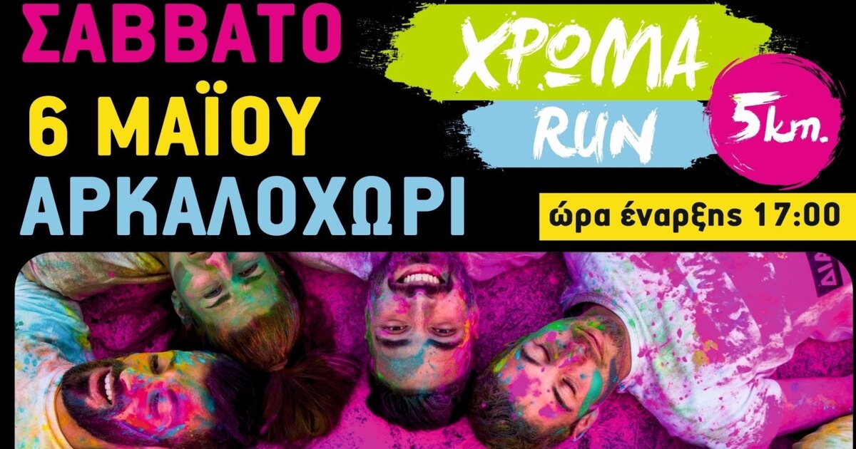 Το ΧΡΩΜΑ RUN επιστρέφει το Σάββατο 06 Μαΐου 2023 στις 5:00 μ.μ στο Αρκαλοχώρι και είναι έτοιμο να μοιράσει ξανά χαμόγελα και μία αξέχαστη εμπειρία διασκέδασης σε μικρούς και μεγάλους ! Διοργανωτής του αγώνα είναι ο Αθλητικός Σύλλογος Υγείας Αρκαλοχωρίου με συνδιοργανωτές τον Δήμο Μινώα Πεδιάδας και την Περιφέρεια Κρήτης.