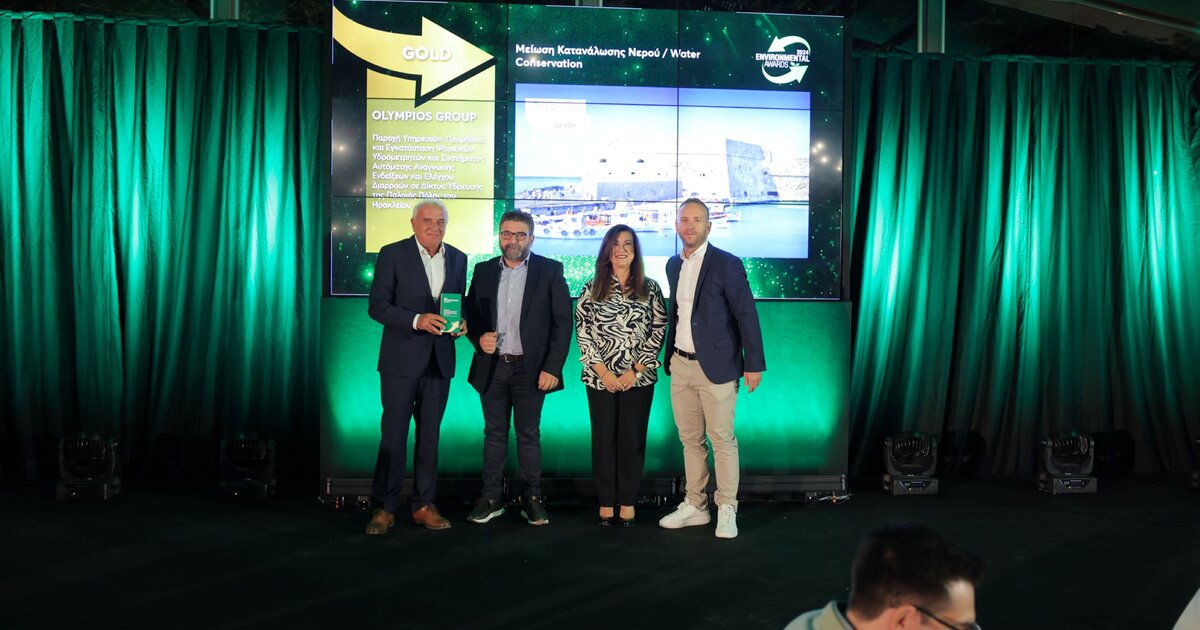 Το χρυσό βραβείο στην κατηγορία της Μείωσης Κατανάλωσης Νερού στα Enviromental Awards 2024 απέσπασε η ΔΕΥΑ Ηρακλείου σε συνεργασία με την Olympios Group σε ειδική εκδήλωση που πραγματοποιήθηκε στην Αθήνα.