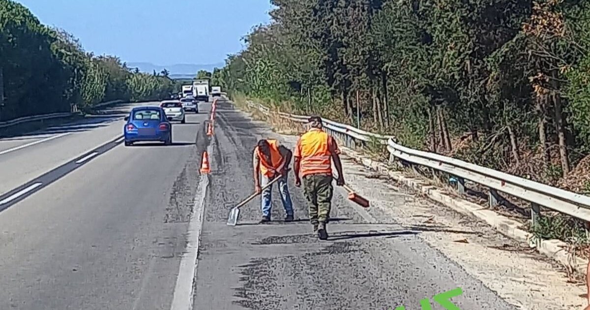 Χύθηκε άσφαλτος στο δρόμο επί του στον ΒΟΑΚ- Δείτε φωτογραφίες