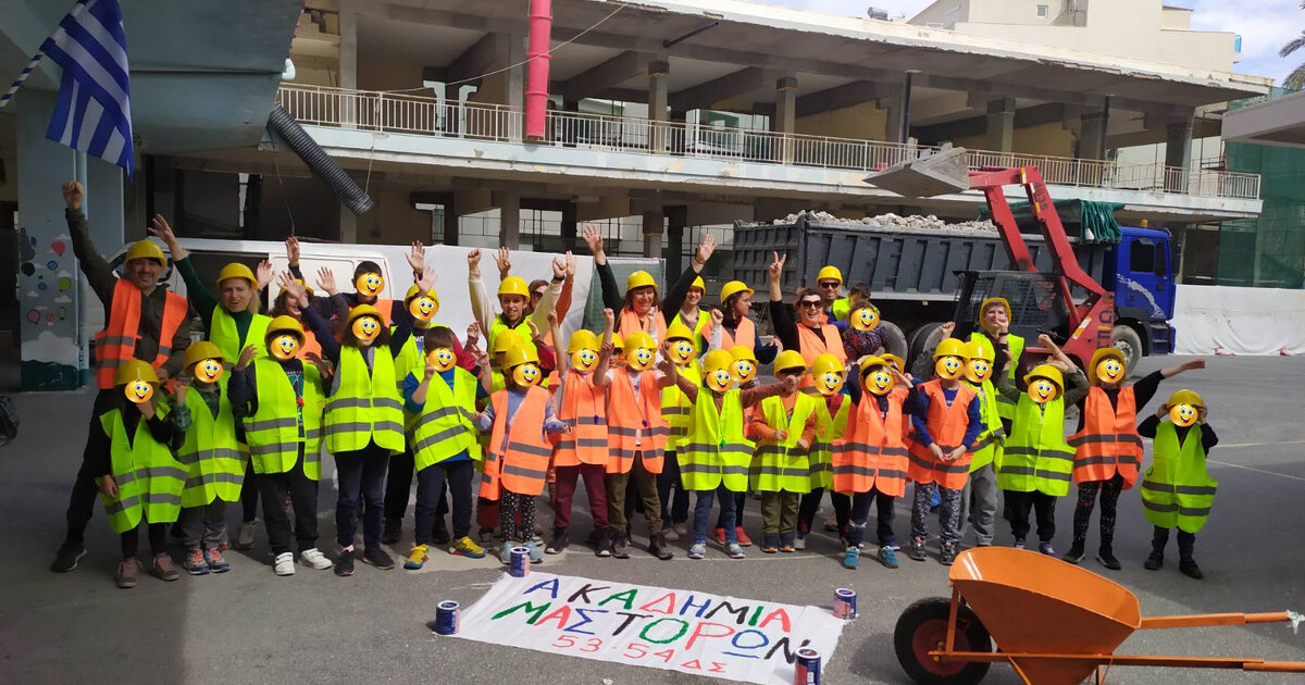 Από «μάστορες» πλημμύρισαν οι δρόμοι στην Καστρινή Αποκριά. Τα παιδιά, οι εκπαιδευτικοί και οι γονείς του 53ου και του 54ου Δημοτικών Σχολείων έστειλαν ένα ξεχωριστό μήνυμα προς τον Δήμο Ηρακλείου και κάθε άλλο αρμόδιο. Η κατά τουλάχιστον ενάμισι χρόνο καθυστέρηση στην ολοκλήρωση του έργου (με βάση τις παρατάσεις που έχουν ήδη δοθεί) αλλά και το αίτημα για δημιουργία αίθουσας πολλαπλών χρήσεων (που μέχρι σήμερα δεν έχει εξασφαλιστεί αν και πρόκειται για ένα από τα μεγαλύτερα σχολεία της πόλης), μετατράπηκαν σε ένα event με πολύ κέφι αλλά και με σαφή αιτήματα.