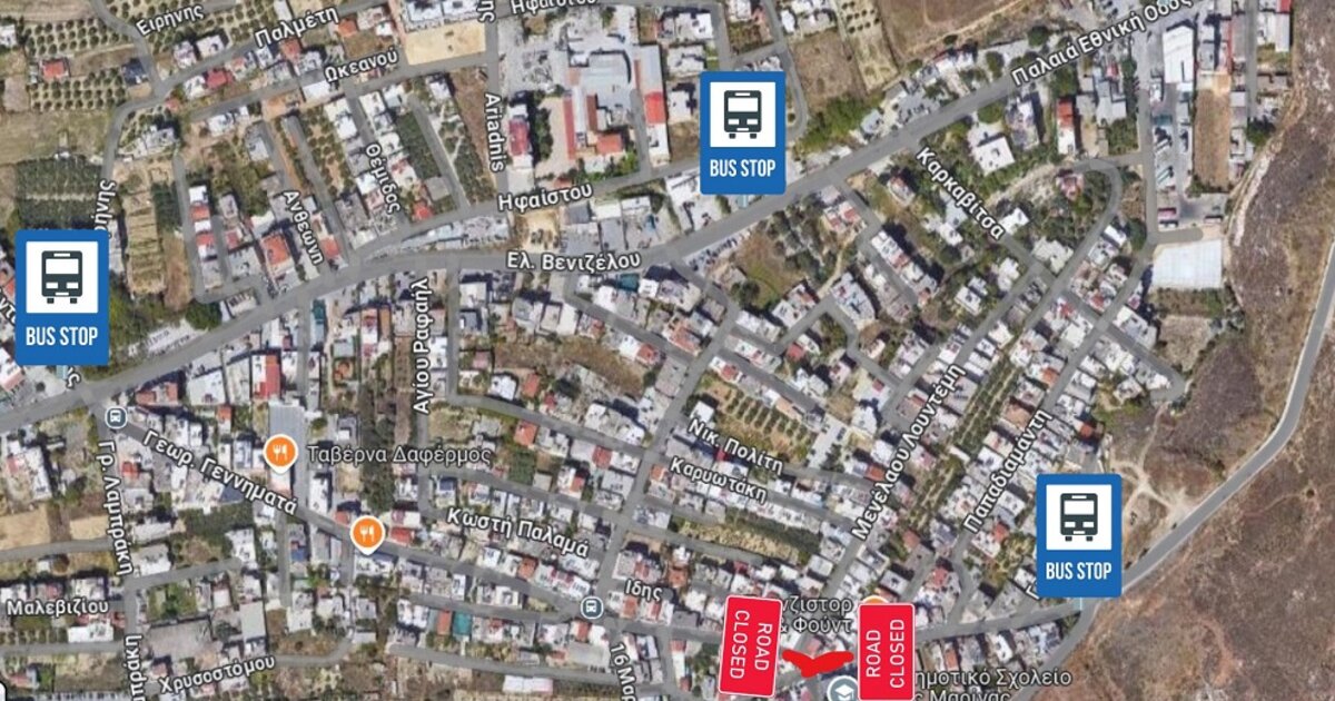 Δ.) Επίσης το λεωφορείο θα κάνει στάση στη συμβολή των οδών Γεννηματά και Στεφανογιάννη από την ανατολική πλευρά του οικισμού.