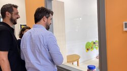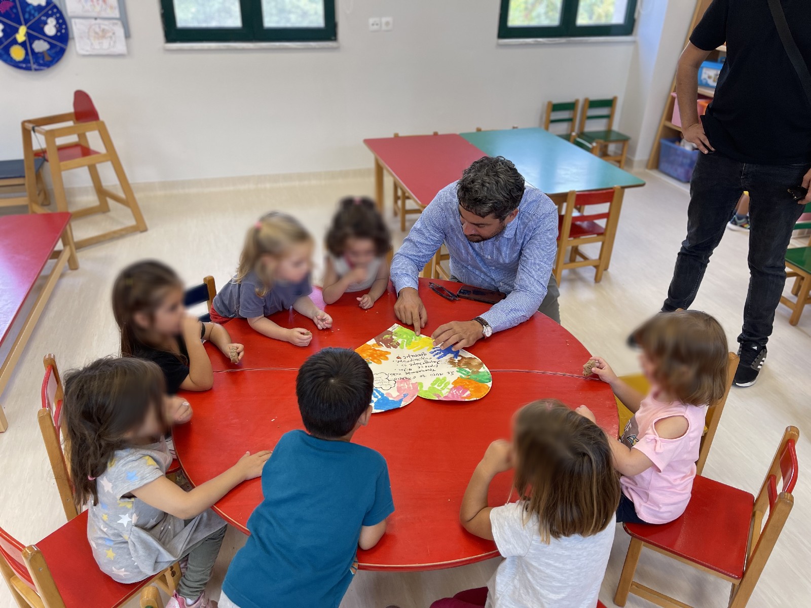 Ο Δήμαρχος Χανίων είχε την ευκαιρία να ξεναγηθεί από τις εργαζόμενες, στον χώρο του νέου βρεφονηπιακού σταθμού αλλά και να δει από κοντά ένα κομμάτι της καθημερινότητας των παιδιών, τα οποία μάλιστα είχαν ετοιμάσει και μια μικρή έκπληξη γι’ αυτόν.