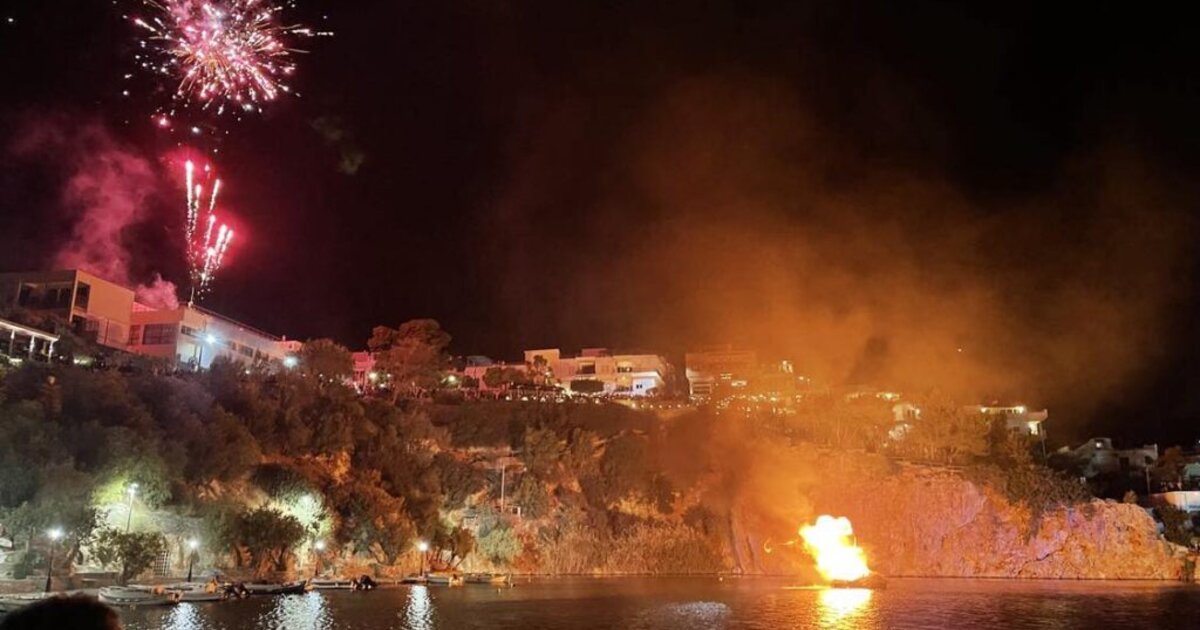 Συγχρόνως ο ουρανός γέμισε με πολλά πολύχρωμα πυροτεχνήματα.
