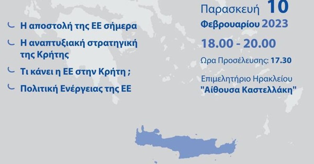 Εκδήλωση ενημέρωσης και συζήτησης με τους πολίτες πραγματοποιεί, στο Ηράκλειο, το γραφείο στην Ελλάδα της Γενικής Διεύθυνσης Επικοινωνίας του Ευρωπαϊκού Κοινοβουλίου.
