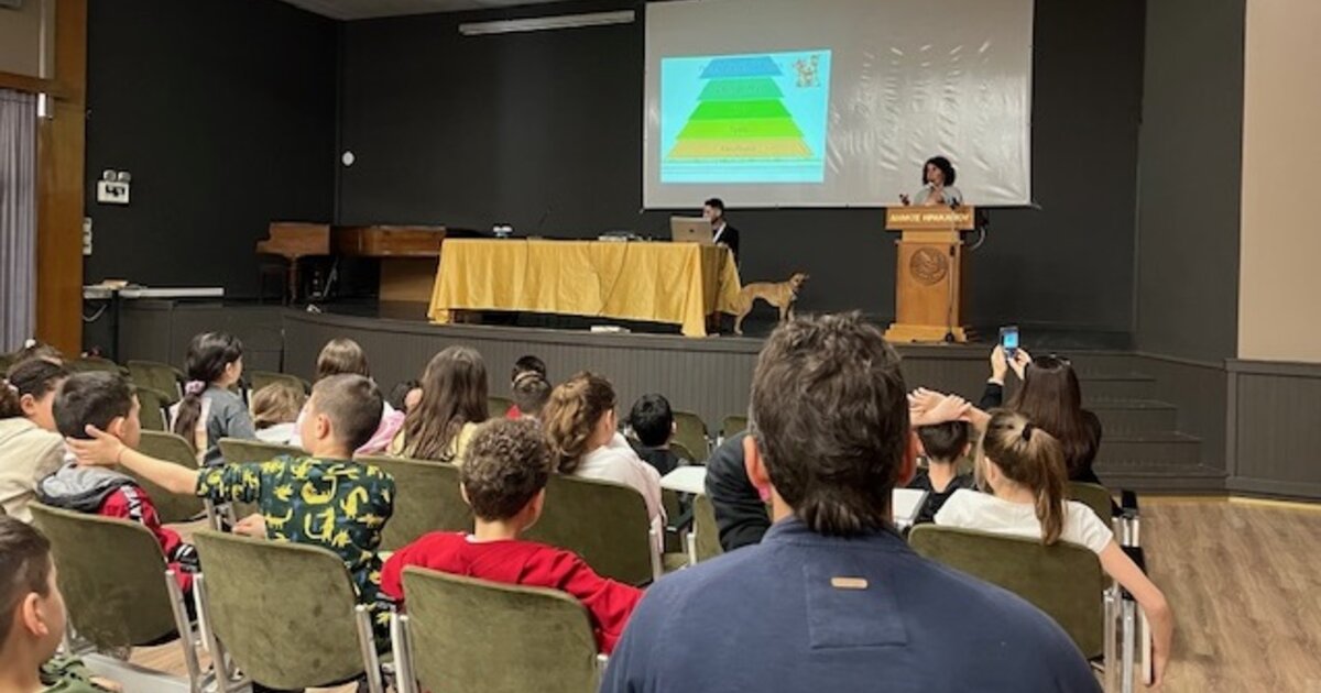 Δεκάδες μαθητές και μαθήτριες από το 50ο, το 17ο και το Ζάννειο Δημοτικό Σχολείο, και από το 2ο και 6ο Γυμνάσιο Ηρακλείου συμμετείχαν στην ενημερωτική δράση του Δήμου Ηρακλείου με στόχο την ευαισθητοποίηση των νέων στη φιλοζωία και στην προστασία του περιβάλλοντος. Η δράση πραγματοποιήθηκε στην αίθουσα «Μανόλης Καρέλλης» στο κτήριο της Ανδρόγεω το πρωί της Τετάρτης 10/4.