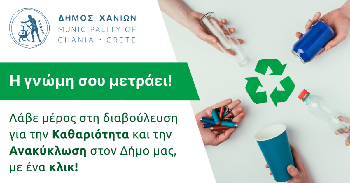 Η γνώμη σου μετράει! Διαδικτυακή διαβούλευση του Δήμου Χανίων για την ανακύκλωση και την καθαριότητα