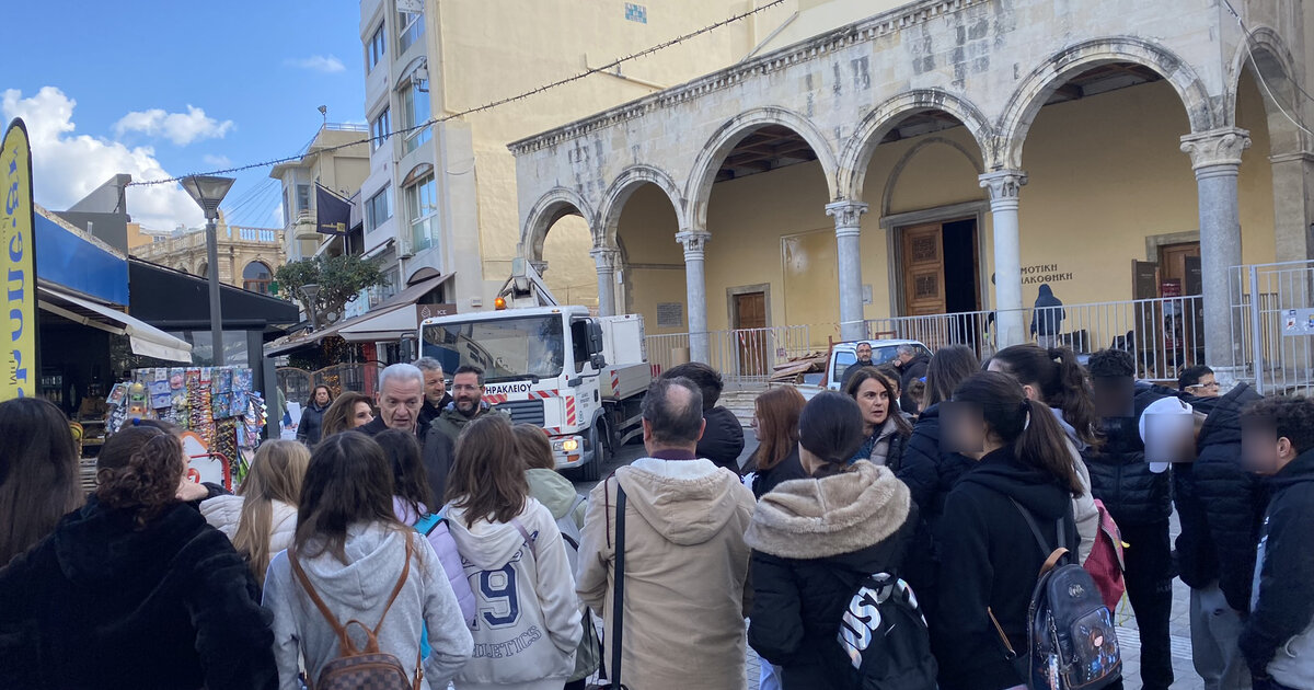 Μια ομάδα μαθητών του 13ου Γυμνασίου Ηρακλείου που πραγματοποιούσε εκπαιδευτική εκδρομή στο κέντρο της πόλης, συνάντησε τον Δήμαρχο Αλέξη Καλοκαιρινό και τον ενημέρωσε για τη δράση περιβαλλοντικής ευαισθητοποίησης που διεξάγει, η οποία εντάσσει και το στοιχείο του πολιτισμού, της μνήμης και της ιστορίας μας.