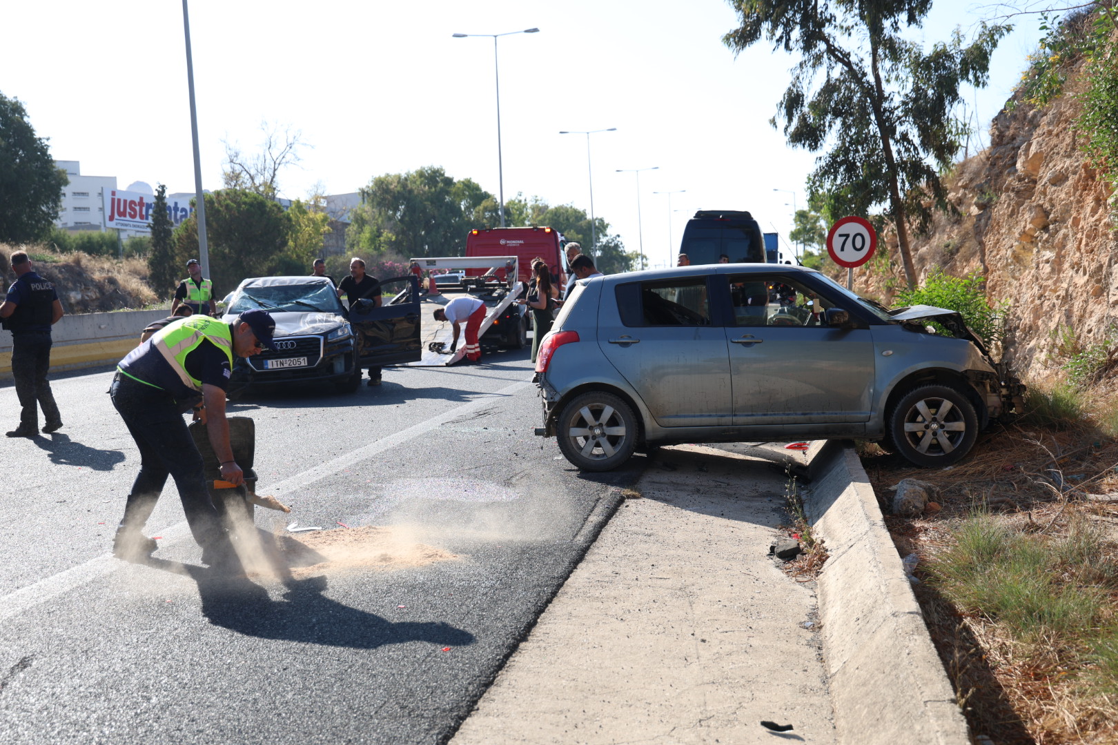 Στο σημείο έσπευσαν ασθενοφόρα του ΕΚΑΒ, αλλά και άνδρες της Τροχαίας καθώς υπήρχε έντονη κυκλοφοριακή συμφόρηση.