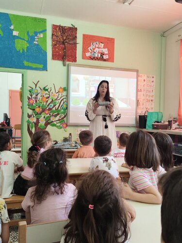 Η Καθέρη Αργυρώ, επισκέφθηκε το σχολείο και μίλησε στα παιδιά για τη σημασία της ανακύκλωσης, μέσα από βιωματικές και ψυχαγωγικές δραστηριότητες.