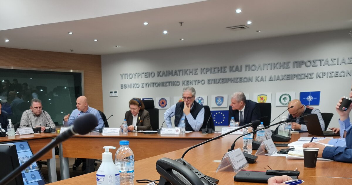 Στην σύσκεψη συμμετείχαν ο Υπουργός Κλιματικής Κρίσης & Πολιτικής Προστασίας κ. Χρήστος Στυλιανίδης, η Υπουργός Πολιτισμού & Αθλητισμού κ. Λίνα Μενδώνη, ο κ. Στέλιος Πέτσας, Αναπληρωτής Υπουργός Εσωτερικών, ο κ. Γιώργος Αμυράς, Υφυπουργός Περιβάλλοντος, ο κ. Ευάγγελος Τουρνάς, Υφυπουργός Κλιματικής Κρίσης & Πολιτικής Προστασίας, ο κ. Χρήστος Λάμπρης, Αντιστράτηγος, Επιτελάρχης Π.Σ., Περιφερειάρχες και Δήμαρχοι.