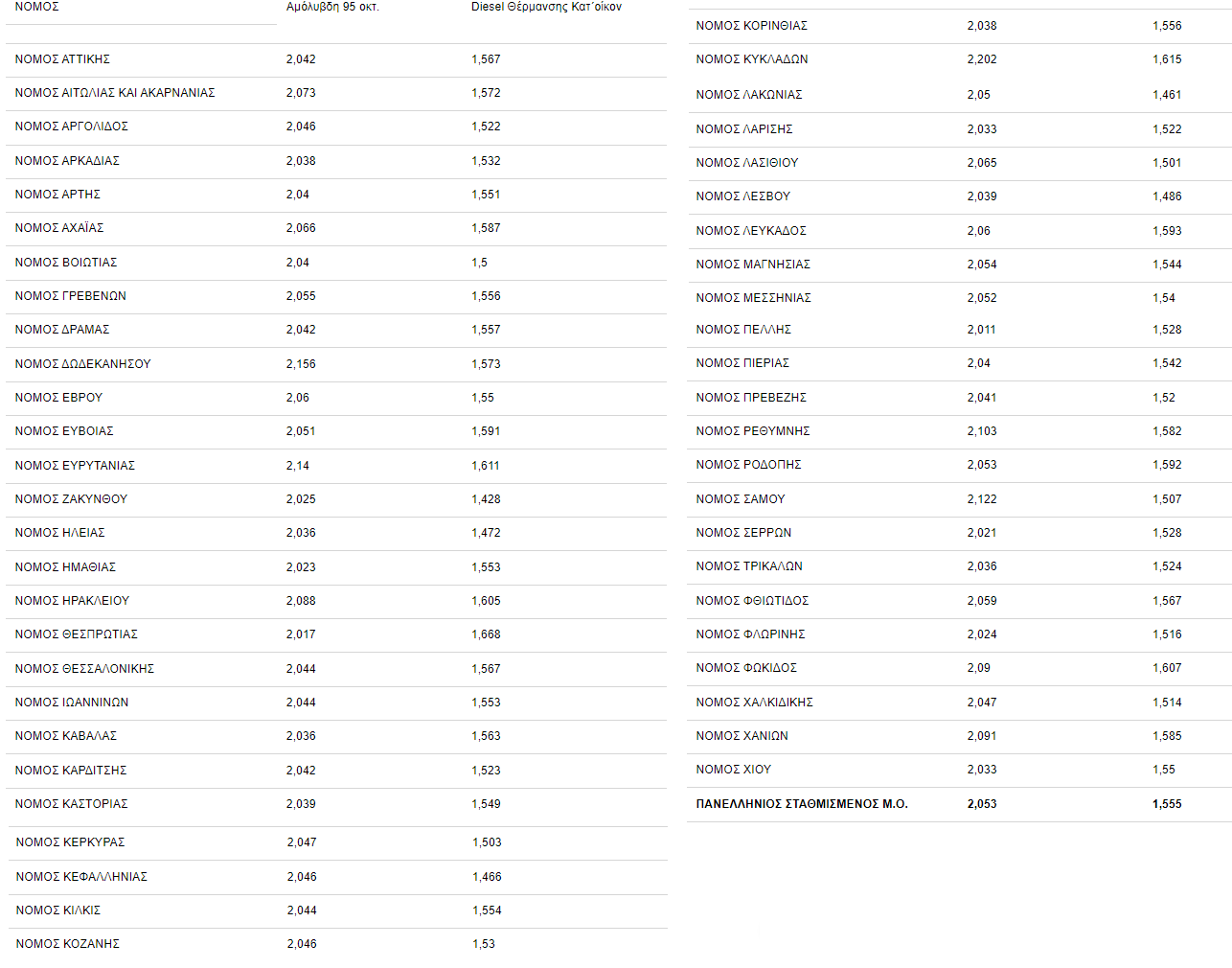 Οι τιμές της απλής αμόλυβδης βενζίνης και του πετρελαίου θέρμανσης πανελλαδικά διαμορφώνονται ως εξής: