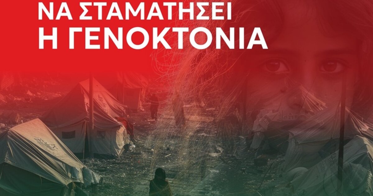 "Στη Γάζα εξελίσσεται μια γενοκτονία. Η σφαγή χιλιάδων αμάχων, οι ισοπεδωμένες γειτονιές, τα παιδιά που λιμοκτονούν καθημερινά δεν μπορεί να αφήνουν κανέναν και καμία άπραγο. Ο παλαιστινιακός λαός μάχεται για ελευθερία, δικαιοσύνη και αξιοπρέπεια απέναντι σε ένα ισραηλινό κράτος-τρομοκράτη, με την ανοιχτή στήριξη των κυβερνήσεων των ΗΠΑ και της ΕΕ.