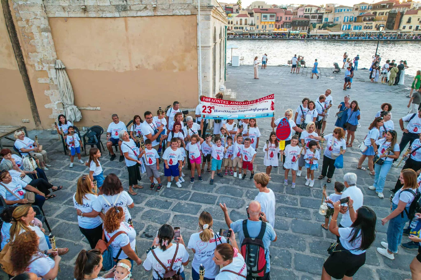 Μια μεγάλη γιορτή για την πόλη των Χανίων, όπου η παράδοση συναντήθηκε με τον εθελοντισμό, αποτέλεσε η χθεσινή βραδιά, με την Παραδοσιακή Στράτα του Δήμου Χανίων να φιλοξενεί την 23η Πανελλήνια Λαμπαδηδρομία Εθελοντών Αιμοδοτών.