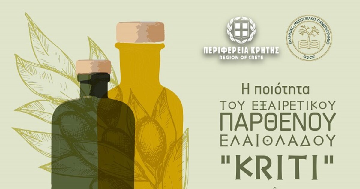 Η Περιφέρεια Κρήτης και το Ελληνικό Μεσογειακό Πανεπιστήμιο, σε συνεργασία με τον Δήμο Βιάννου, διοργανώνουν εσπερίδα για την ποιότητα του Εξαιρετικού Παρθένου Ελαιόλαδου “Kriti” η οποία θα πραγματοποιηθεί την Παρασκευή 12 Ιουλίου 2024, στις 17:00 το απόγευμα, στην αίθουσα του δημοτικού συμβουλίου στο δημαρχείο Βιάννου.