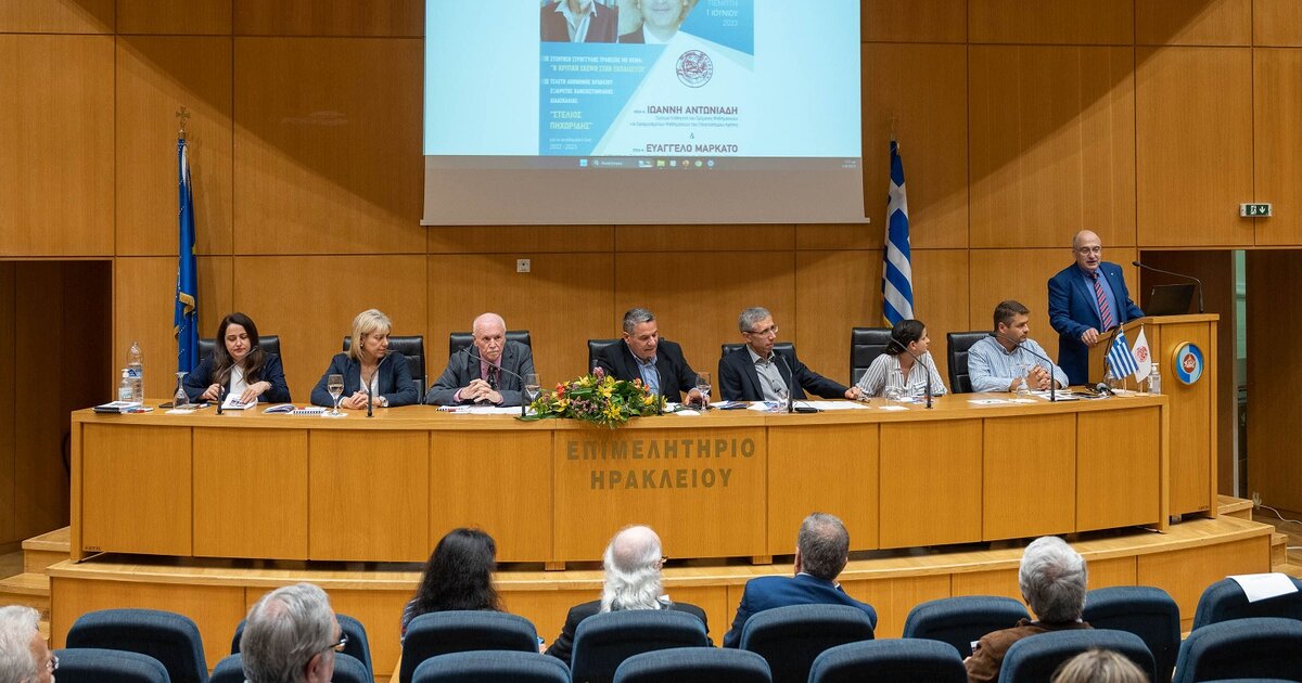 Με μεγάλη συμμετοχή πραγματοποιήθηκε την Πέμπτη 1 Ιουνίου 2023 και ώρα 17:00 στην αίθουσα «Καστελλάκη» του Επιμελητηρίου Ηρακλείου η συζήτηση στρογγυλής τραπέζης, με θέμα: «Η Κριτική Σκέψη στην Εκπαίδευση» και η τελετή απονομής του Βραβείου Εξαίρετης Πανεπιστημιακής Διδασκαλίας «ΣΤΕΛΙΟΣ ΠΗΧΩΡΙΔΗΣ» για το ακαδημαϊκό έτος 2022 – 2023.