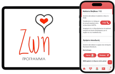 Παράλληλα σε συνεργασία με το ΙΤΕ δημιουργείται η εφαρμογή του προγράμματος "Ζωή", που καθένας θα μπορεί να έχει στη συσκευή του (android ή iOS) μέσω της οποίας θα ενημερώνεται για το που υπάρχει απινιδωτής κοντά του αλλά και πως μπορεί να τον χρησιμοποιήσει. Ταυτόχρονα στήνεται ένας διαδικτυακός κόμβος προκειμένου όλοι οι φορείς σε όλη την Κρήτη που διαθέτουν ήδη με δική τους πρωτοβουλία απινιδωτή, να ανεβάσουν την τοποθεσία στην πλατφόρμα, προς ενημέρωση του κοινού.