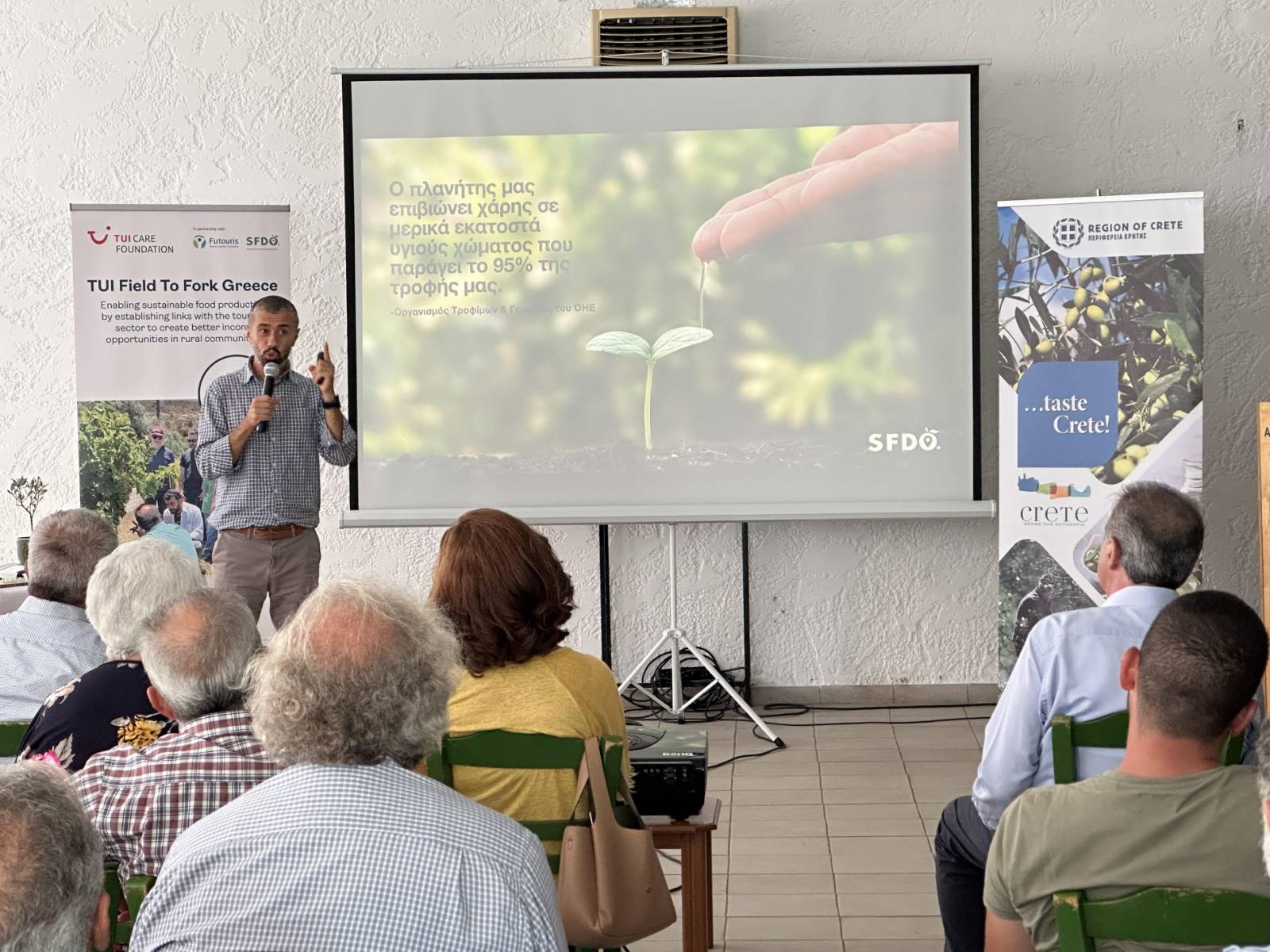 Η ημερίδα πραγματοποιήθηκε στo πλαίσιo του προγράμματος CLLD/LEADER που υλοποιεί ο Δήμος Αγίου Βασιλείου σε συνεργασία με τον οργανισμό Βιώσιμων Διατροφικών Προορισμών SFDO και το Οργανοληπτικό Εργαστήριο Κρήτης ΑΣΡ.