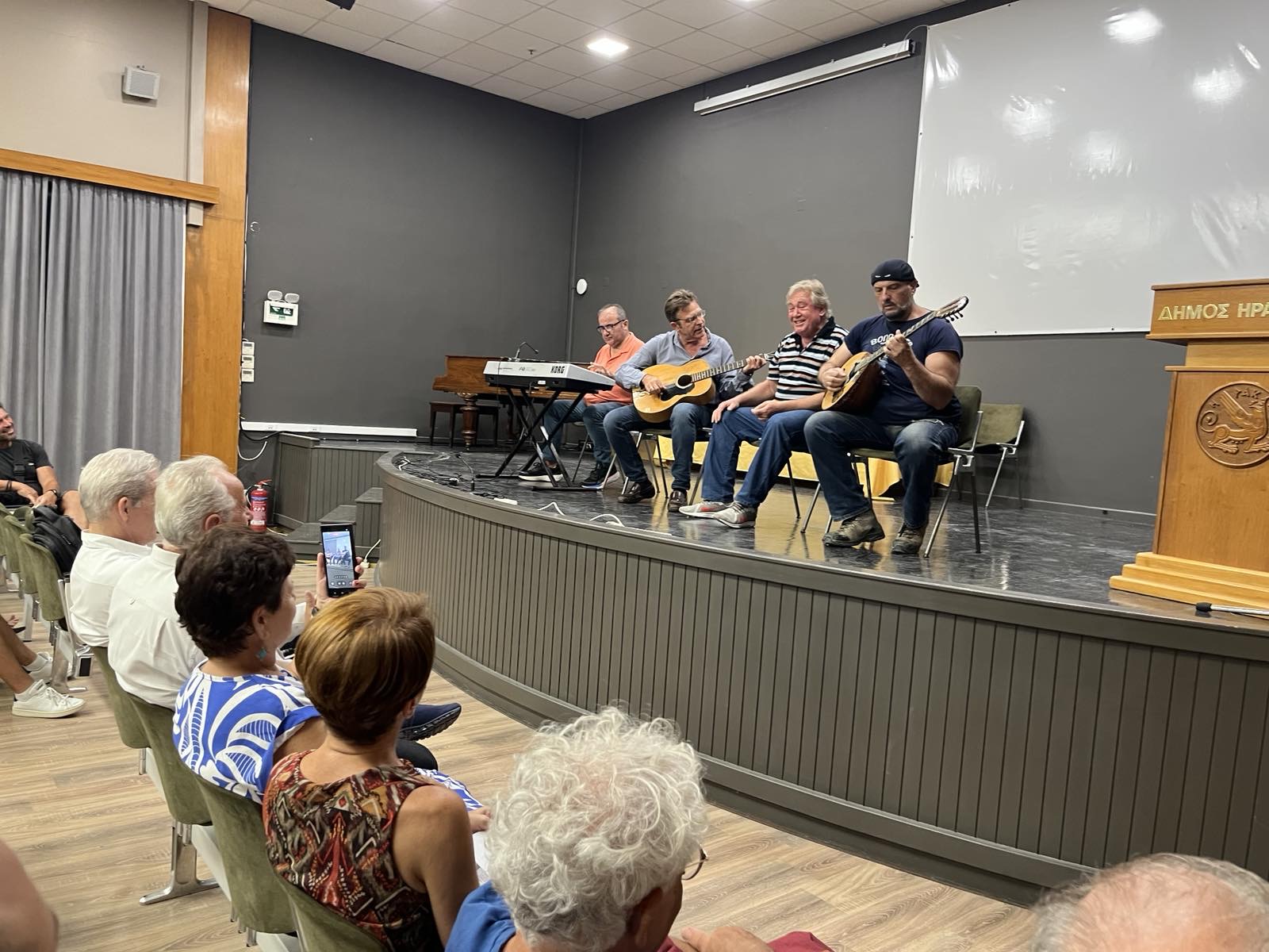 Την εκδήλωση έντυσαν μουσικά οι εκπαιδευτικοί, φίλοι και διδάσκοντες του Κοινωνικού Φροντιστηρίου, Κωστής Παπαδόπουλος, Νίκος Σακαβέλης, Γιάννης Διαμαντίδης και Νίκος Ξυδιανάκης.