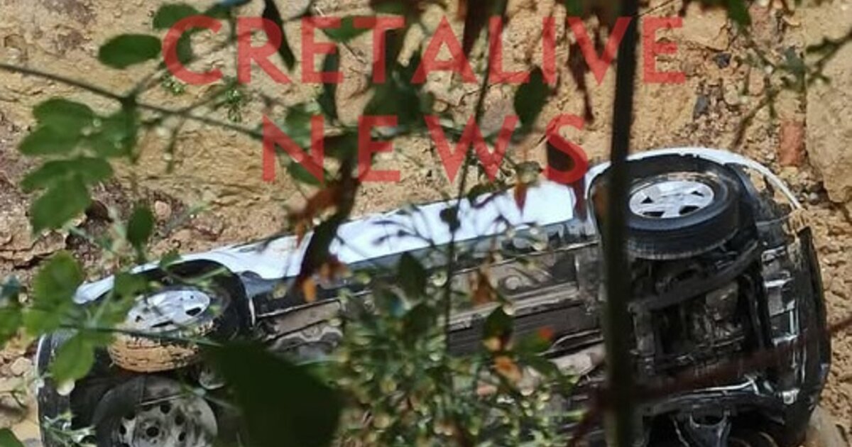 Oι φωτογραφίες και το βίντεο που δημοσιεύει το Cretalive είναι αποκαλυπτικά: Το λευκό τζιπ "βυθίστηκε" στα θεμέλια οικοδομής όπως και οι προστατευτικές λαμαρίνες που είχαν πρόχειρα τοποθετηθεί!