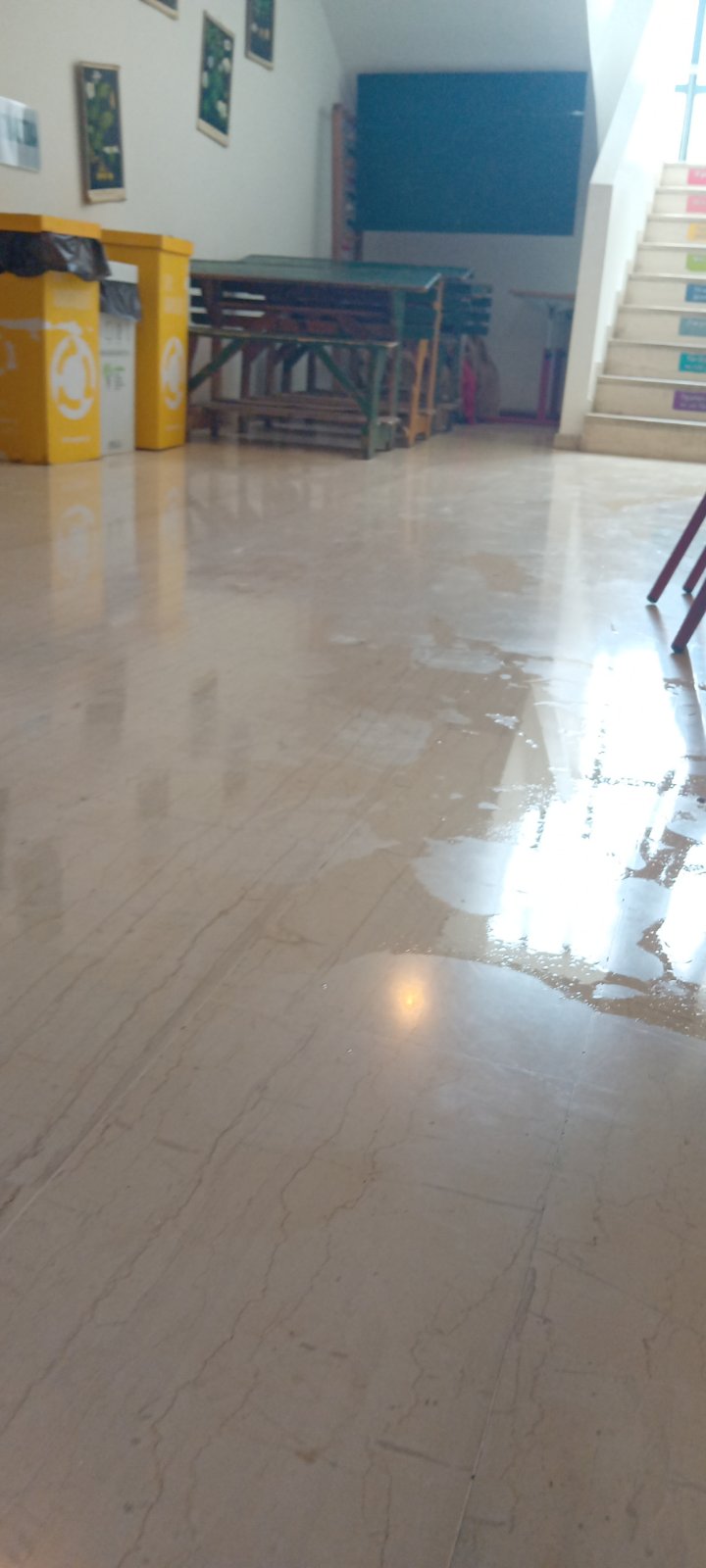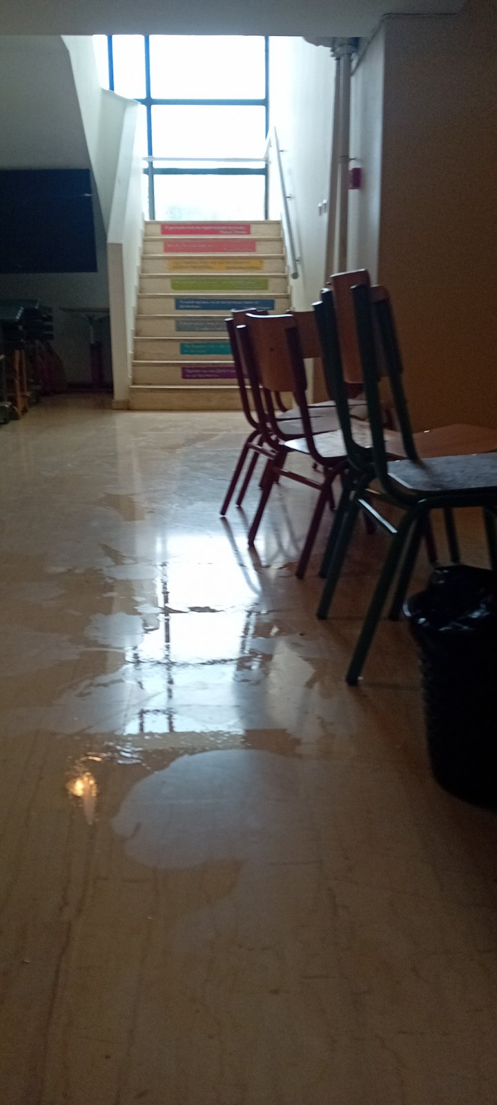 Αμέσως, οι δάσκαλοι προσπάθησαν να μαζέψουν τα νερά για να μη χτυπήσει κάποιο παιδί.