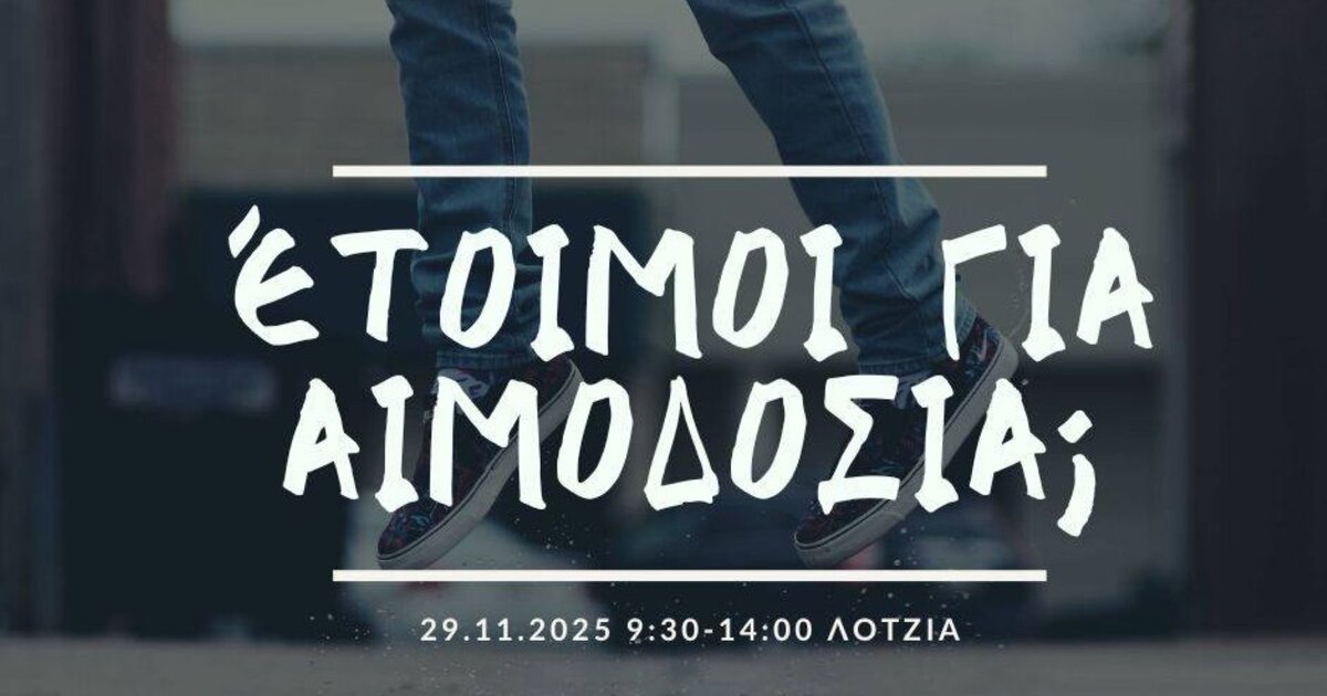 Το Σάββατο 29 Νοεμβρίου 2025 θα πραγματοποιηθεί εθελοντική αιμοδοσία στο κέντρο της πόλης του Ηρακλείου και συγκεκριμένα στο αίθριο της Λότζια από τις 09:30 έως τις 14:00. Σε αυτή την αιμοδοσία συμμετέχουν οι σπουδαστές της Σ.Α.Ε.Κ του Γ.Ν «Βενιζέλειο – Πανάνειο». Η εθελοντική αιμοδοσία πραγματοποιείται κάθε Σάββατο.
