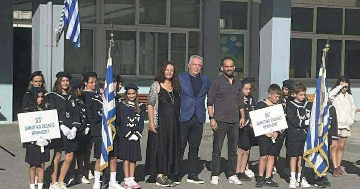 Μια ξεχωριστή και συγκινητική στιγμή έζησαν τα 53ο και 54ο Δημοτικά Σχολεία Ηρακλείου, τα οποία στεγάζονται στο ιστορικό κτήριο της πρώην Παιδαγωγικής Ακαδημίας, κατά τη διάρκεια της γιορτής της 28ης Οκτωβρίου.