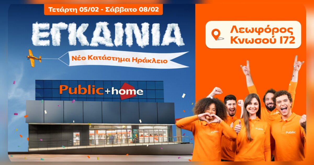 Αυτή την Πέμπτη, 6 Φεβρουαρίου, τα Public προσκαλούν τους καταναλωτές να γιορτάσουν για ένα τριήμερο γεμάτο προσφορές, τη μοναδική εμπειρία Public + home που έφτασε στην πόλη του Ηρακλείου!
