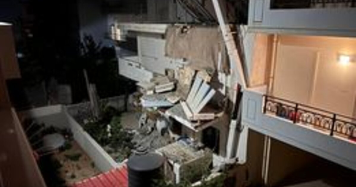 Ηράκλειο: Κατέρρευσε τμήμα μπαλκονιου και στέγαστρο - Φωτογραφίες