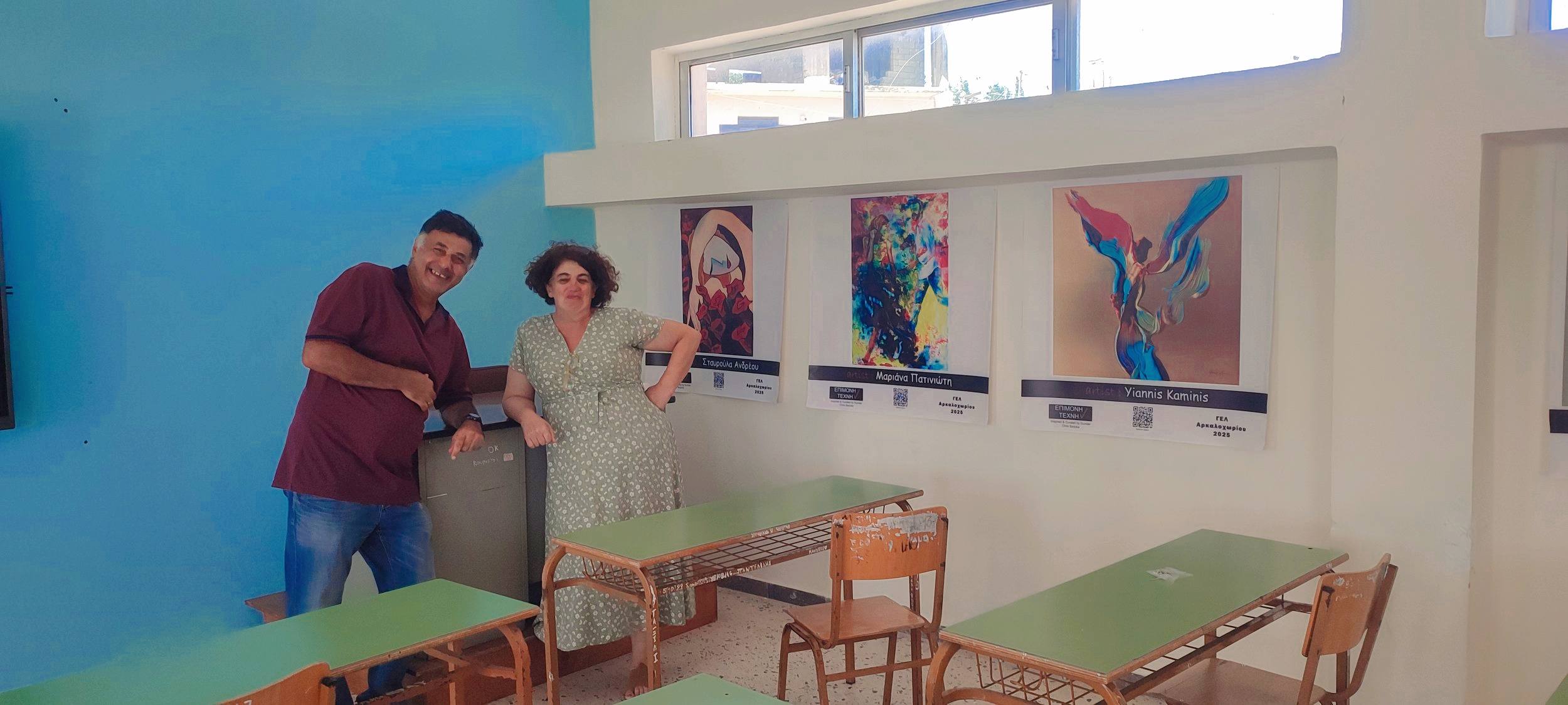 Όμως μέσα από τη δυσκολία γεννήθηκε μια νέα πρωτοβουλία χάρη στο μεράκι του διευθυντή του σχολείου, Κωνσταντίνου Τσαλουχίδη, και της πολύτιμης φιλολόγου, Μαρία Χαραλαμπάκη, σε συνεργασία με την τόσο ξεχωριστή επιμέλεια που είχα την ευλογία να ζήσω και καλλιτέχνες της ΕΠΙΜΟΝΗΣ ΤΕΧΝΗΣ οι οποίοι με αγάπη για το σχολείο και τον τόπο, στόλισαν το σχολείο με το αποτύπωμά τους, μεταμορφώνοντας τους τοίχους σε ζωντανούς καμβάδες ελπίδας και νέας αρχής. Οι τοιχογραφίες και οι εικαστικές επεμβάσεις δεν είναι μόνο στολίδι• αποτελούν σύμβολο της ενότητας και της δύναμης της κοινότητας να ξανασταθεί στα πόδια της.