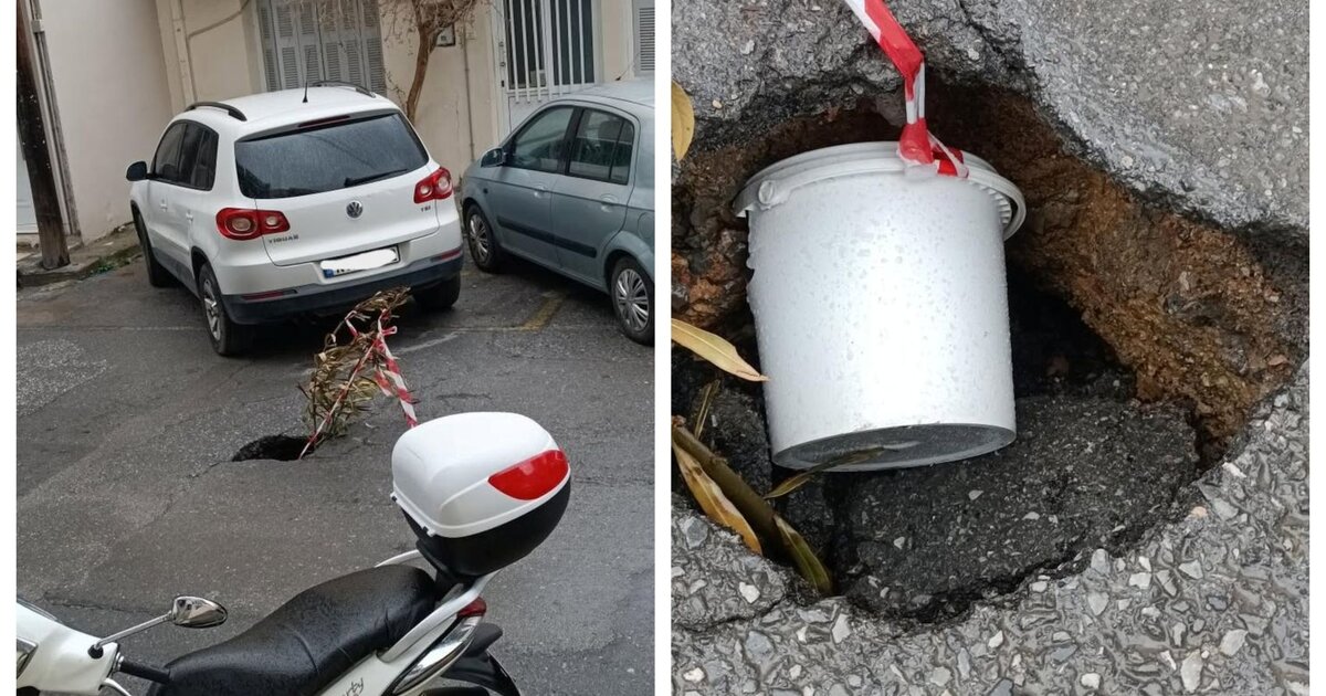 Άνοιξε η γη, ευτυχώς χωρίς να καταπιεί κατοίκους και διερχόμενους – πεζούς και οδηγούς- σε ένα σημείο της οδού Κωνσταντινίδου, στο Ηράκλειο.