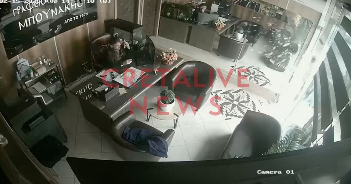 Τρόμος το μεσημέρι της Κυριακής (15/02) στο Ηράκλειο και συγκεκριμένα στο γραφείο τελετών Μπουνάκης, στη Λεωφόρο Κνωσού, όταν ο αέρας πήρε κυριολεκτικά και σήκωσε την πόρτα της επιχείρησης. Θραύσματα από τα τζάμια εκτοξεύτηκαν μέσα στον χώρο, προκαλώντας έντονο φόβο σε εργαζόμενους αλλά και περαστικούς.
