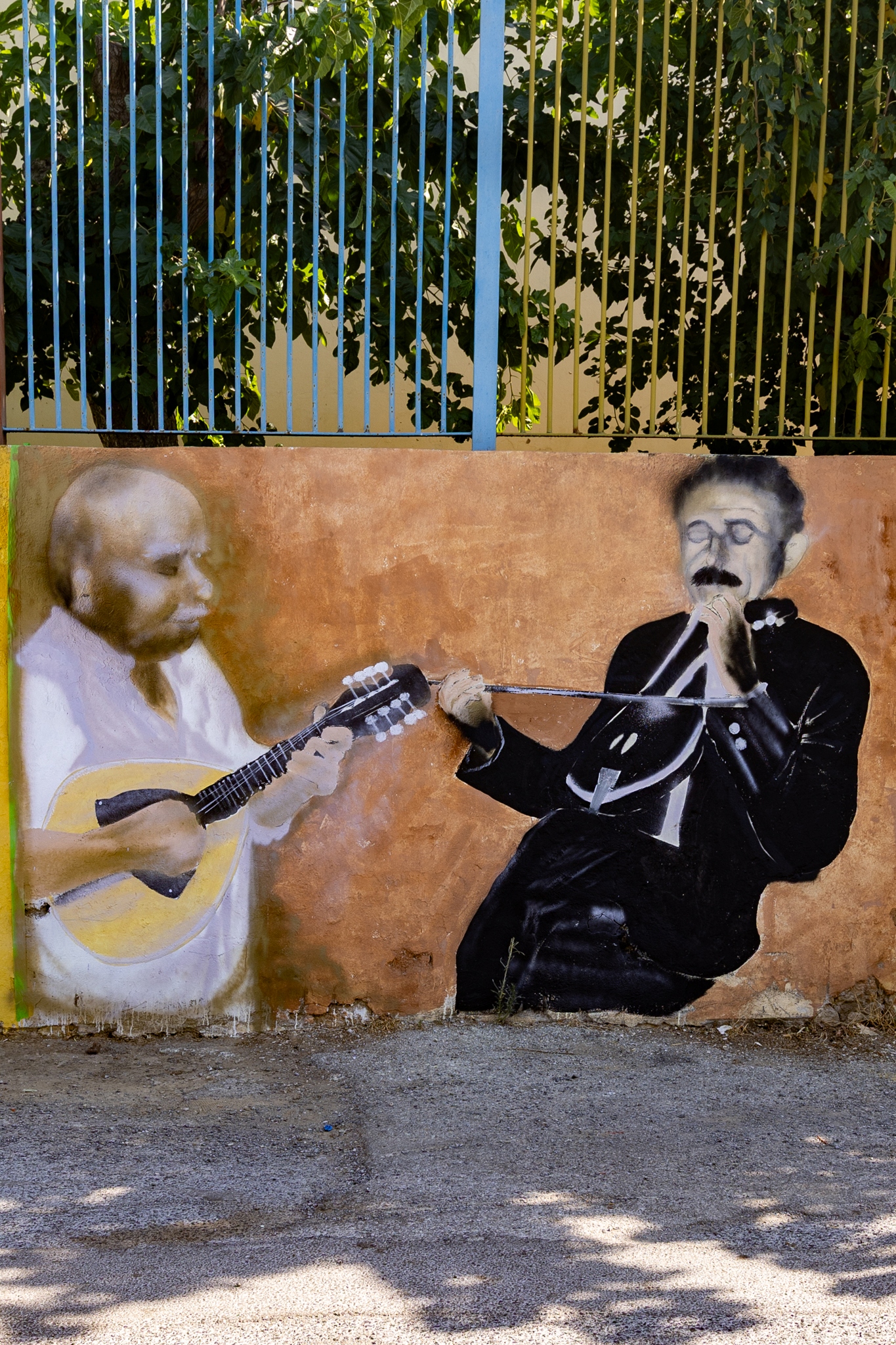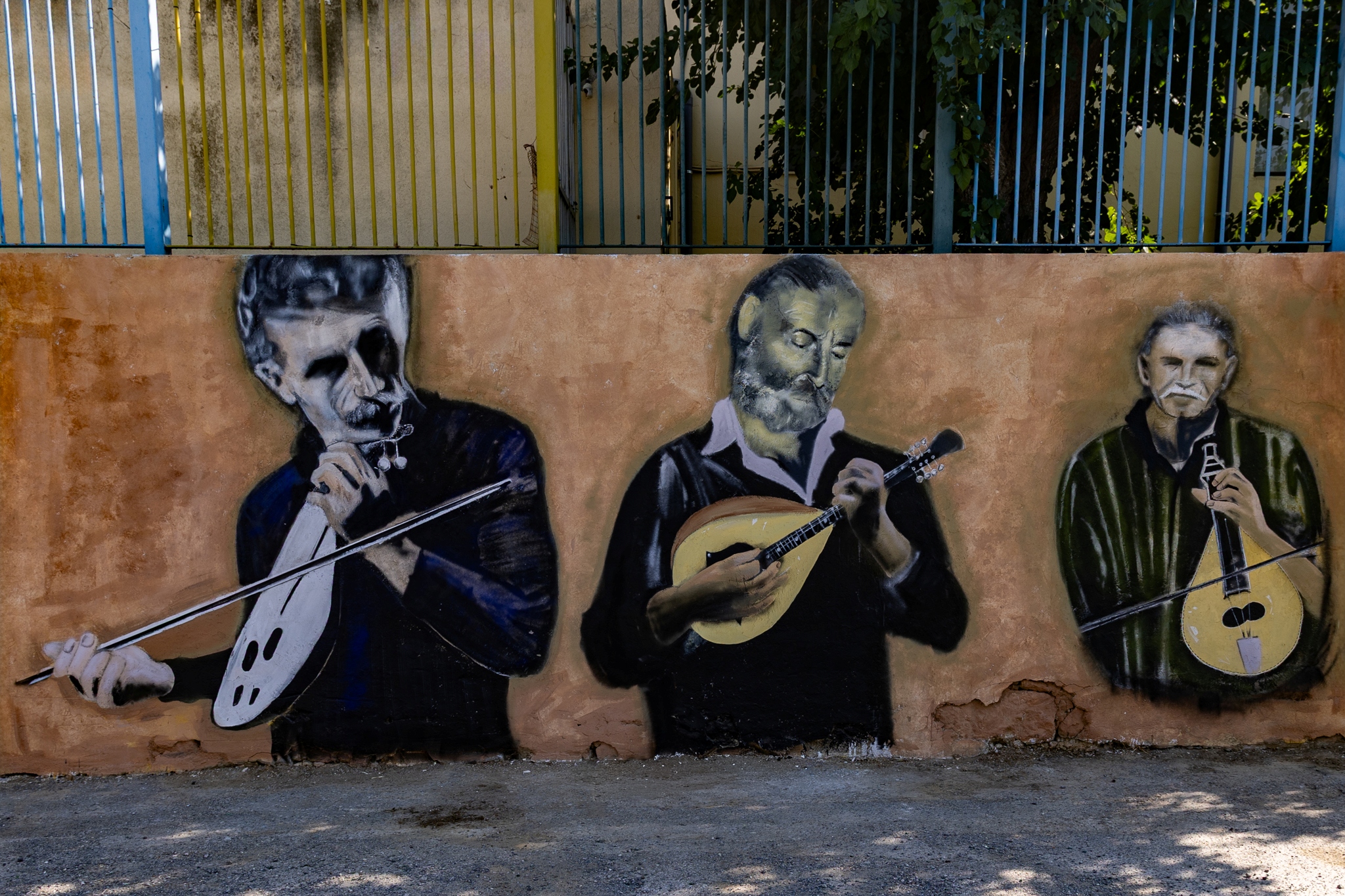 Η Niki Goranova ζωγράφισε τους μουσικούς του Χάρακα και το αποτύπωμά τους στη λαϊκή μνήμη. Στον Χάρακα, η μουσική δεν ήταν απλώς τέχνη, ήταν τρόπος να επικοινωνούν οι άνθρωποι. Στα καφενεία, στα σπίτια και στα πανηγύρια, οι μουσικοί έδιναν τον τόνο της ζωής. Οι Χαρακιανοί είχαν την τύχη να διαθέτουν δικούς τους μερακλήδες, που έπαιζαν με την καρδιά τους. Το χωριό επέλεξε να τιμηθούν πέντε εκπρόσωποι της ζωντανής αυτής παράδοσης του χωριού. Ο Παντελής Σταυρουλάκης, Ο Μιχαλάκης Μανώλης ή «Τζιβιδίκος», Γαργουλάκης Νίκος ή «Παναγόνικος, ο Βασιλάκης Δημήτρης ή «Τσουρλής» και Αποστολάκης Γιώργος ή «Τσαμπάζης». Θα το βρείτε στον τοίχο του Δημοτικού Σχολείου, στο δρόμο.