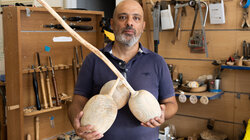 Photo Credits: @Αναπτυξιακή Ηρακλείου Ο Josef με το ξυλόγλυπτο έργο του, «Σταφύλι», αποτυπώνει την αδιάρρηκτη σχέση του νομού Ηρακλείου με την αμπελουργία και τον καρπό που έχει συμβολίσει και τροφοδοτήσει τον τοπικό πολιτισμό για αιώνες. Το ξυλόγλυπτο έργο του δεν είναι απλώς μια απεικόνιση του σταφυλιού, αλλά μια εικαστική ωδή στην παράδοση, την ευφορία της γης και τη συλλογική προσπάθεια που χαρακτηρίζει την αμπελουργική κοινότητα της Κρήτης. Μέσα από το υλικό και την υφή του ξύλου, το έργο εκφράζει τη ζεστασιά, την ιστορία και το μεράκι που συνδέονται με τον καρπό της αμπέλου, αναδεικνύοντας παράλληλα τη σημασία της αμπελουργίας ως ζωτικό στοιχείο της ταυτότητας και της οικονομίας του τόπου.