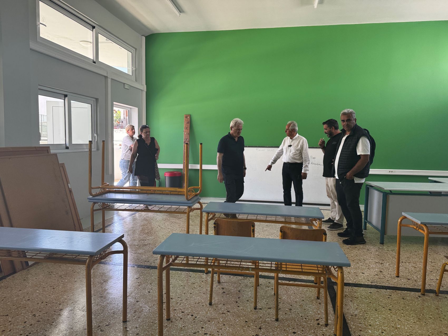 Αυτοψία στο ολοκληρωμένο βόρειο κτίριο του σχολικού συγκροτήματος της λ. Ακαδημίας, στο οποίο στεγάζονται το 53ο & 54ο Δημοτικό Σχολείο πραγματοποίησε ο Δήμαρχος Ηρακλείου Αλέξης Καλοκαιρινός με τους Αντιδημάρχους Τεχνικών Υποδομών & Βιώσιμης Κινητικότητας Γιώργο Σισαμάκη και Παιδείας Αντώνη Περισυνάκη, τα στελέχη της Τεχνικής Υπηρεσίας Μανόλη Μανουσάκη και Δήμητρα Κενδριστάκη και την Διευθύντρια του 53ου Δημοτικού Σχολείου Αθηνά Ανδριώτη.