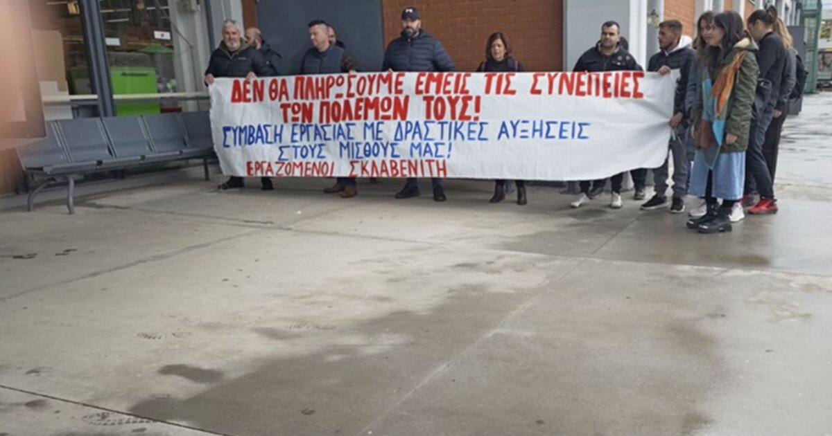 Οι εργαζόμενοι - όπως τονίζεται- έστειλαν μήνυμα: "Συλλογικές συμβάσεις – αυξήσεις των μισθών. Αυτή είναι η απαίτηση των εργατών", αναδεικνύοντας τα προβλήματα που αντιμετωπίζουν καθημερινά.