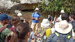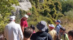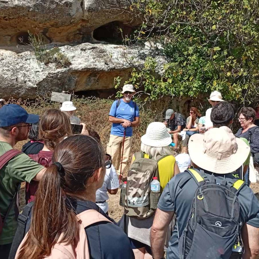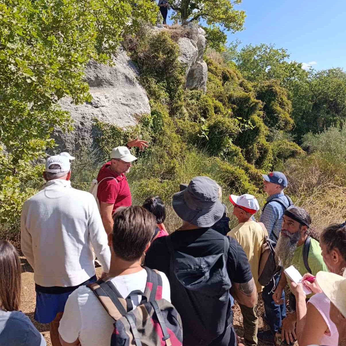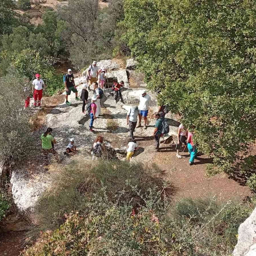 Όλη η ομάδα συγκεντρώθηκε στο χώρο του παρκινγκ του αρχαιολογικού χώρου Ριζηνίας και η διαδρομή ξεκίνησε από τα ιδιαίτερα λαξευτά πατητήρια του Πρινιά, όπου έγινε παρουσίαση των πετρωμάτων που τα φιλοξενούν και της δημιουργίας τους καθώς και συζήτηση για την παραγωγή του κρασιού στην περιοχή με τη συμμετοχή του οινολόγου και οινοποιού της περιοχής, κ. Ζαχαρία Διαμαντάκη. Η ομάδα συνέχισε μέσα από συστάδες τεράστιων βελανιδιών, λιβαδιών και ελαιοκαλλιεργειών ως τις Πίτες ή Τυριά της Γριάς, έναν απ’ τους σημαντικότερους γεώτοπους του γεωπάρκου του Ψηλορείτη. Εκεί ο Πρόεδρος της Κοινότητας Πρινιά, κ. Νικόλαος Γ. Καταντωνάκης, η Πρόεδρος του Πολιτιστικού Συλλόγου Πρινιά «Η Ριζινία» κ. Αικατερίνη Γ. Γιακουμάκη και το μέλος του συλλόγου Αικατερίνη Πατσάκη, μοιράστηκαν με τους συμμετέχοντες τους τοπικούς μύθους για τα Τυριά της Γριάς, το Βότυρο και τις Αμάδες του Διγενή, ενώ ο Πρόεδρος του Γεωπάρκου Ψηλορείτη, Δρ. Χαράλαμπος Φασουλάς, παρουσίασε την επιστημονική ερμηνεία και τον τρόπο σχηματισμού των ιδιαίτερων αυτών γεωμορφών! Παράλληλα, σε όλη τη διαδρομή ο κ. Μανώλης Αβραμάκης- Εφορία Βοτανικής, Μουσείο Φυσικής Ιστορίας Κρήτης- ενημέρωνε για τα ιδιαίτερα είδη της χλωρίδας και τις μορφές βλάστησης που φιλοξενεί η περιοχή!