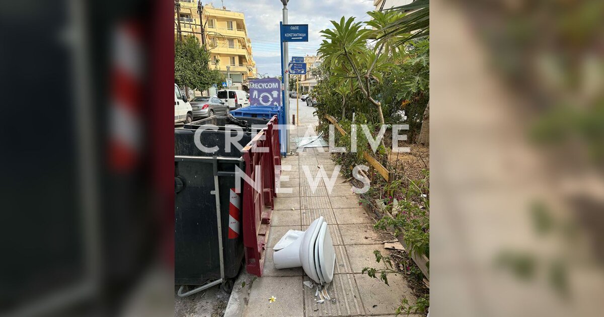 Ηράκλειο: Σπασμένα τζάμια και μια… λεκάνη στο πεζοδρόμιο