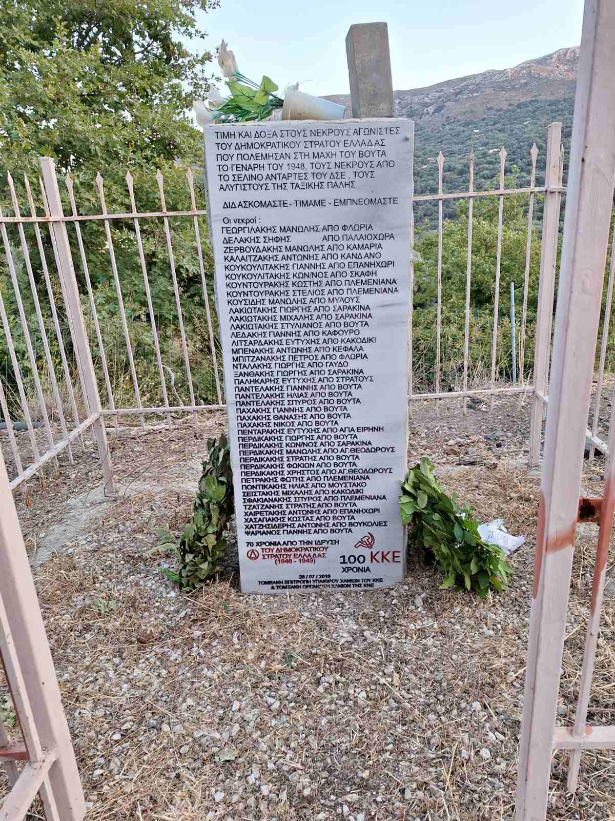Με επιτυχία πραγματοποιήθηκαν από τις Κομματικές Οργανώσεις Βάσης, Καντάνου – Σελίνου, τη Δευτέρα 5/08, στις 19:30, εκδήλωση, στο μνημείου του ΔΣΕ, στον Βουτά Σελίνου, όπου μίλησε η Χαριτίνη Παπαδάκη, μέλος της Τομεακής Επιτροπής Χανίων του ΚΚΕ και στη συνέχεια, στις 20:30, συνεστίαση, στο καφενείο του Γιώργου Κοντάκη, στην πλατεία του Βουτά, όπου μίλησε ο Φώτης Ρηγανάκος, μέλος του Τομεακού Γραφείου Χανίων του ΚΚΕ.