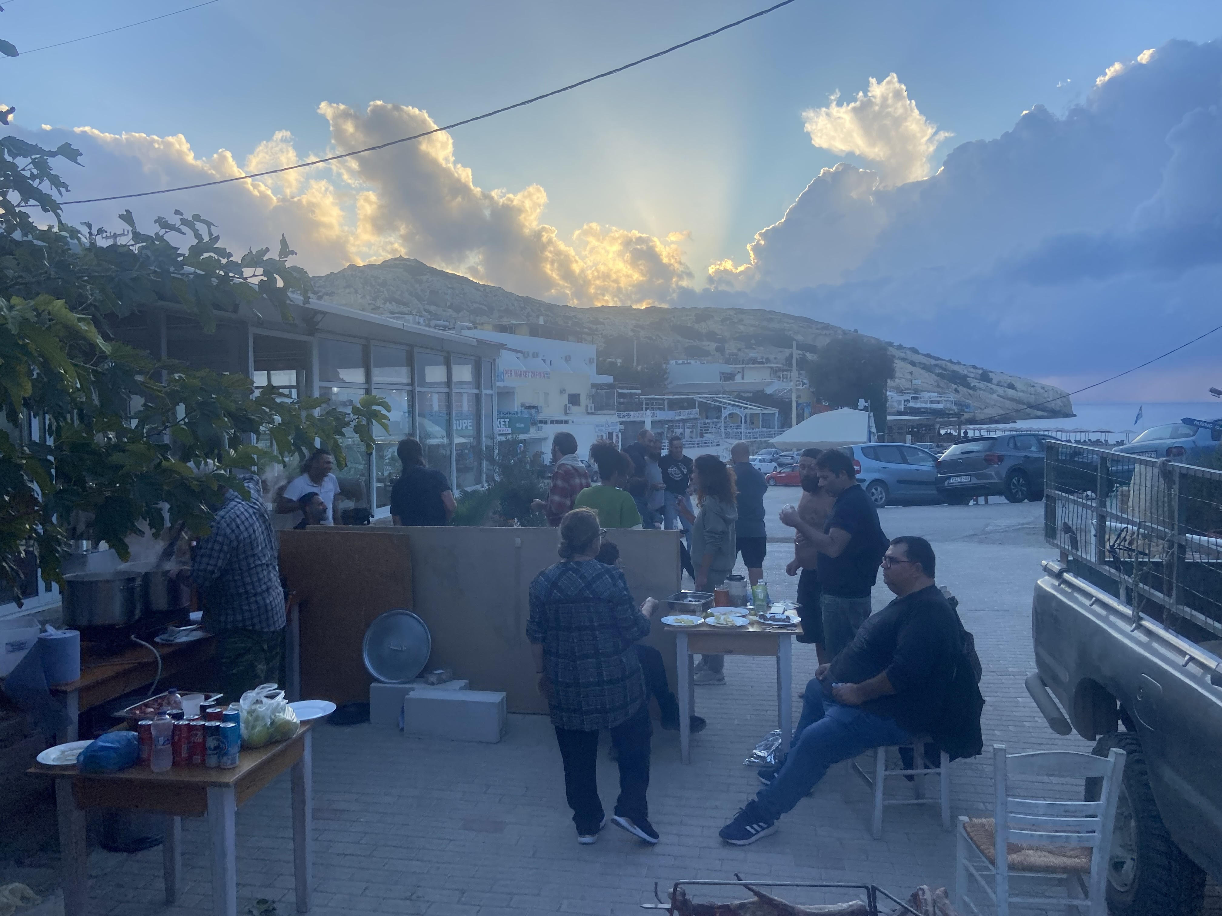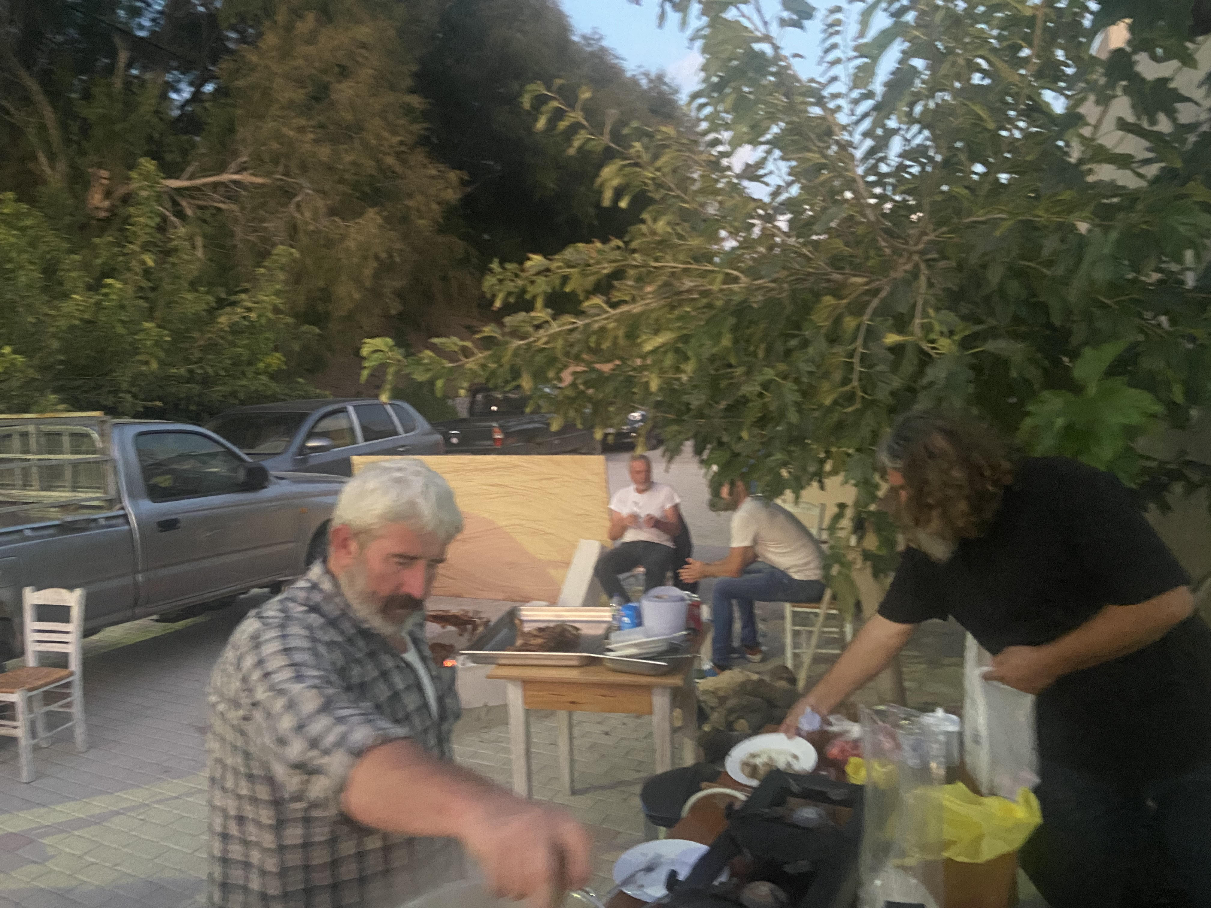 Ο γνωστός κτηνοτρόφος της περιοχής Γιώργος Καψάλης έλαβε θέση στην κουζίνα, ενώ παρουσίασε βήμα-βήμα και τις τεχνικές για την παρασκευή των πιάτων. Το δείπνο "επένδυσαν" μελωδικά καλλιτέχνες της περιοχής, με την παρέα να σχηματίζεται τάχιστα και όλοι μαζί να απολαμβάνουν ένα γνήσιο κρητικό γλέντι!