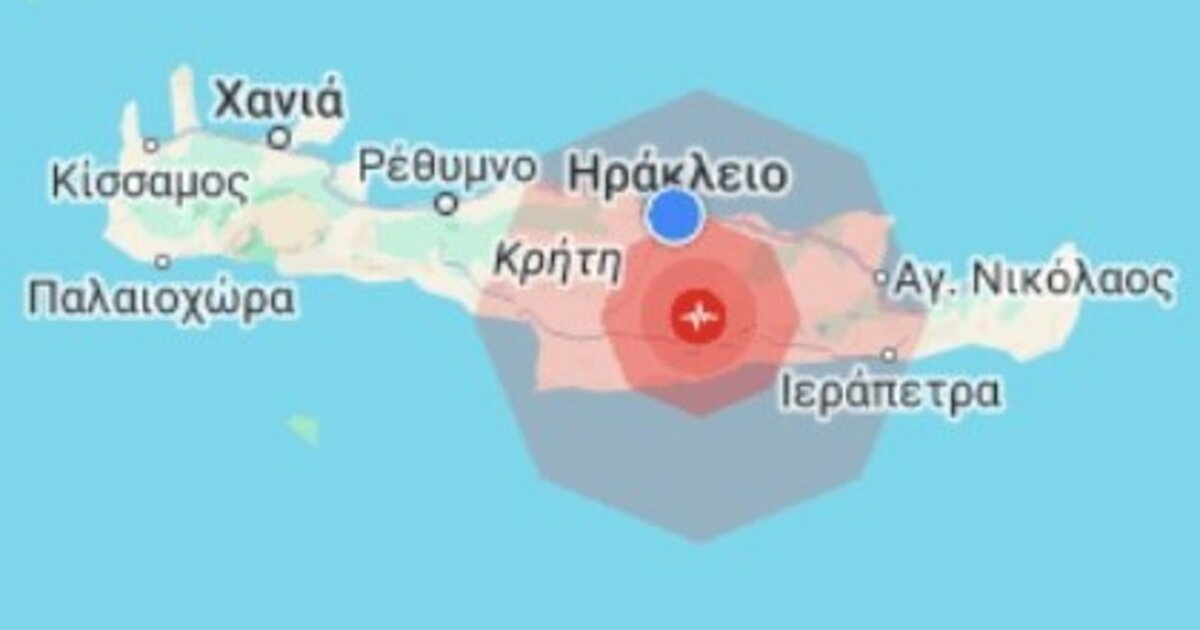 Σεισμός στο Αρκαλοχώρι - Αισθητή και στο Ηράκλειο η δόνηση