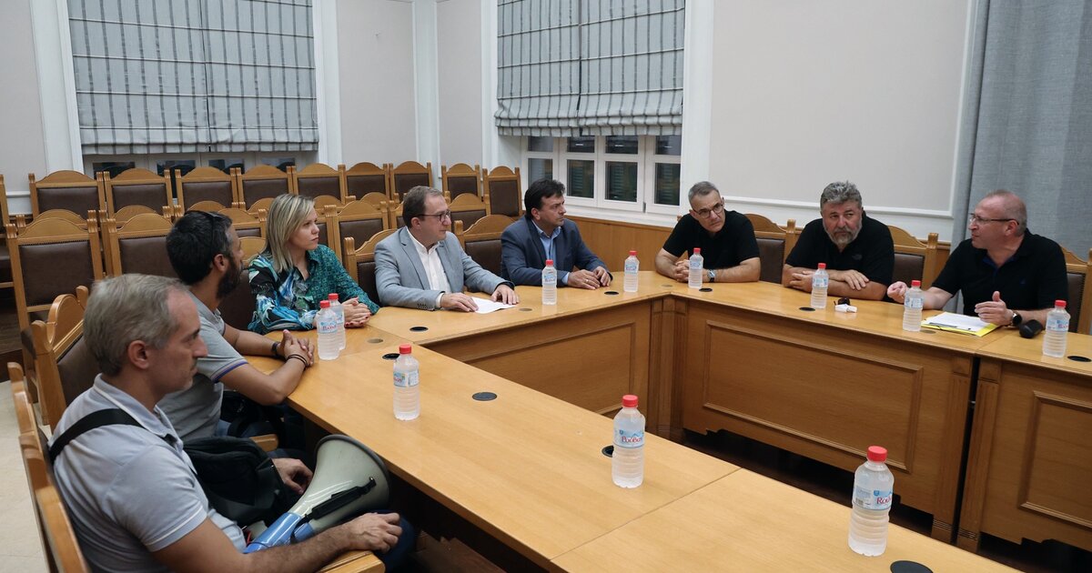 Εκπρόσωπο των εργαζομένων στο νοσοκομείο παρέδωσαν ανακοίνωση-ψήφισμα στον Πρόεδρο του Περιφερειακού Συμβουλίου Βαγγέλη Ζάχαρη παρόντων του Αντιπεριφερειάρχη Νίκου Συριγωνάκη και της γραμματέως του Π.Σ. Γεωργίας Μηλάκη.