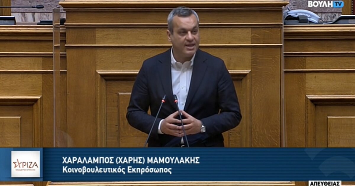 3) Στο θέμα του Ταμείου Ανάκαμψης, όπου η Κυβέρνηση Μητσοτάκη επιχειρεί να εκμεταλλευτεί τους πόρους του με κριτήρια αλλότρια από τα ενδεδειγμένα και ειδικότερα, με μόνο γνώμονα να εξυπηρετήσει συγκεκριμένα επιχειρηματικά συμφέροντα και να ευνοηθούν έτι περαιτέρω από το πακέτο των 12 δισ δανείων και των 18 δισ επιδοτήσεων. «Φέρνετε αύριο στη Βουλή το νομοσχέδιο περί προτάσεων καινοτομίας με πραγματικό στόχο να περιορίσετε τον ανταγωνισμό και να ευνοηθούν συγκεκριμένες εταιρείες» ανέφερε χαρακτηριστικά ο Χάρης Μαμουλάκης, τονίζοντας: «Ένα σχέδιο νόμου σε συνέχεια, του σχεδίου της Επιτροπής Πισσαρίδη και των νομοσχεδίων για τα κόκκινα δάνεια, το σχέδιο Ηρακλής, κλπ, ένα sequel ταινίας τρόμου με έναν και μόνο στόχο: Να κατευθυνθούν όλοι οι πόροι στους λίγους και εκλεκτούς «φίλους» σας. Θα μας βρείτε απέναντι! Κι εμάς, και την Ε.Ε.». Έκανε επίσης αναφορά στις προκλητικές ενισχύσεις συγκεκριμένων εταιρειών, όπως της Fraport που από την Ελλάδα απαίτησε και έλαβε αποζημίωση 177 εκ. ευρώ, χωρίς καμία διαπραγμάτευση, όταν η ίδια εταιρεία στην Τουρκία, για το αεροδρόμιο της Αττάλεια, πήρε υπο-δεκαπλάσιο ποσό. Τόνισε επίσης ότι και σε άλλες Ευρωπαϊκές χώρες, όπως στην Ολλανδία, την Ιταλία και την Γερμανία, ενισχύθηκαν οι εταιρείες αερομεταφορών, αλλά το Δημόσιο αυτών των χωρών έλαβε αντισταθμίσματα. Στην Ελλάδα, όχι.