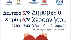 •Τρίτη 6 Σεπτεμβρίου - Δημαρχείο Χερσονήσου, Ελευθερίας 50 Λιμάνι Χερσονήσου -ώρες 09:30-13:30