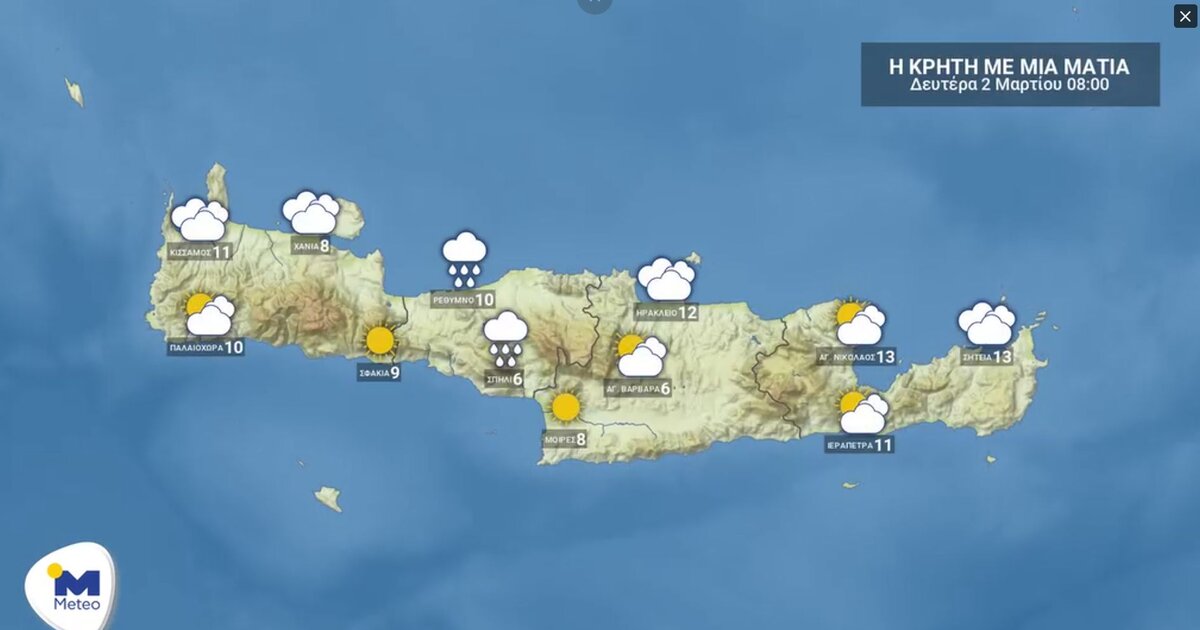 Το χειμωνιάτικο και συννεφιασμένο "προσωπείο" θα συνεχίσει να φορά και τη δεύτερή του ημέρα ο Μάρτης, φέρνοντας πυκνά σύννεφα, χαμηλές θερμοκρασίες και τοπικές βροχές στην Κρήτη.