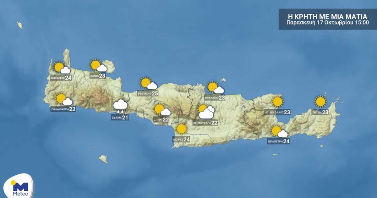 Σύμφωνα με την πρόγνωση καιρού από το meteo.gr, βροχές θα εκδηλωθούν στο Ιόνιο, τα ηπειρωτικά, στην περιοχή των Σφακίων στην Κρήτη και βαθμιαία στην Εύβοια, τις Σποράδες, τις Κυκλάδες και τα νησιά του Βόρειου Αιγαίου. Σποραδικές καταιγίδες προβλέπονται κυρίως στα δυτικά.