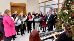 Η χορωδία Ιωνία Αηδών εκτός από τα παραδοσιακά κάλαντα, επεφύλασσε μια έκπληξη τραγουδώντας τα Κεφαλονιτικά κάλαντα για τη νέα χρονιά. Στα πλήκτρα ήταν η μαέστρος Λένα Χατζηγεωργίου και στα κρουστά η Γιάννα Κουτρούλη.