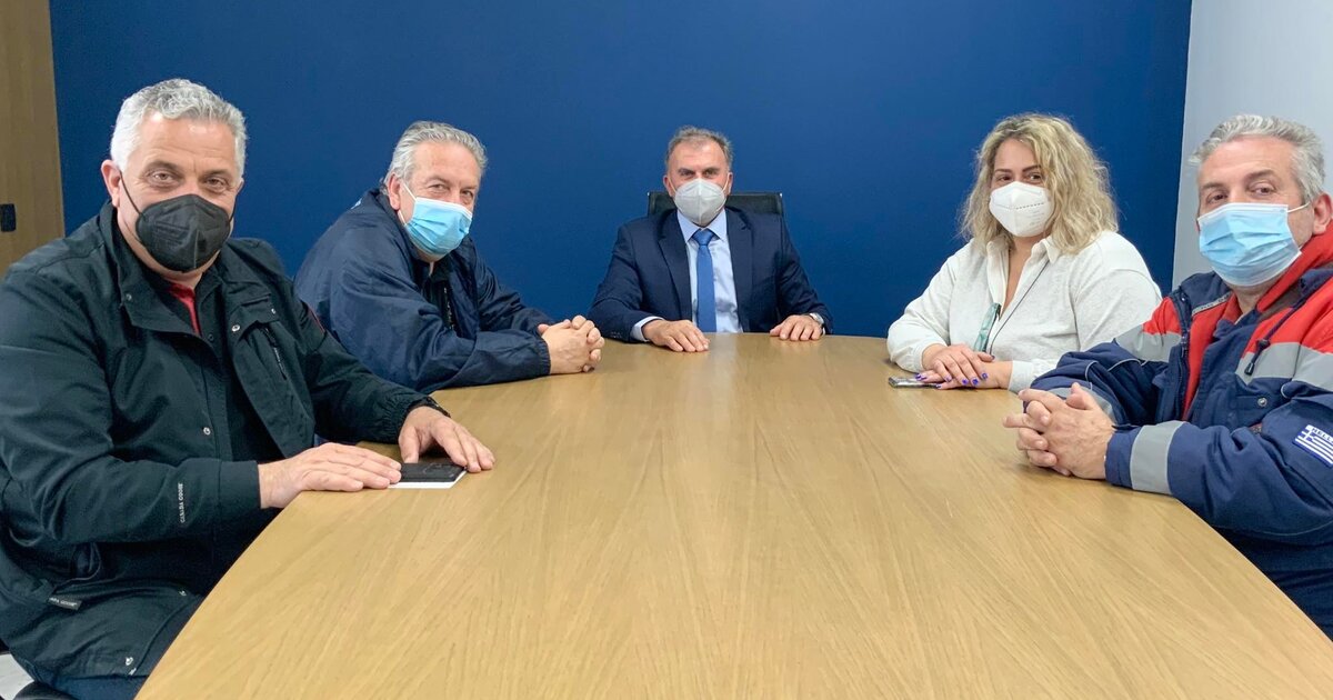 Τον Διευθυντή του ΕΚΑΒ Κρήτης, κ. Νικόλαο Γιαννακουδάκη ,την Υπεύθυνη του Γραφείου Κίνησης και Συνεργείου του ΕΚΑΒ Κρήτης, κα Ειρήνη Μπαλή και τον Υπεύθυνο του ΕΚΑΒ Ιεράπετρας κ. Γεώργιο Αγγελάκη, υποδέχθηκε ο Δήμαρχος Ιεράπετρας, κ. Θεοδόσης Καλαντζάκης στο Γραφείο του. Στη συνάντηση επιβεβαιώθηκε η άριστη συνεργασία του Δήμου Ιεράπετρας με το ΕΚΑΒ, ενώ συγχρόνως συζητήθηκαν περαιτέρω θέματα που άπτονται της μέριμνας και των δύο.